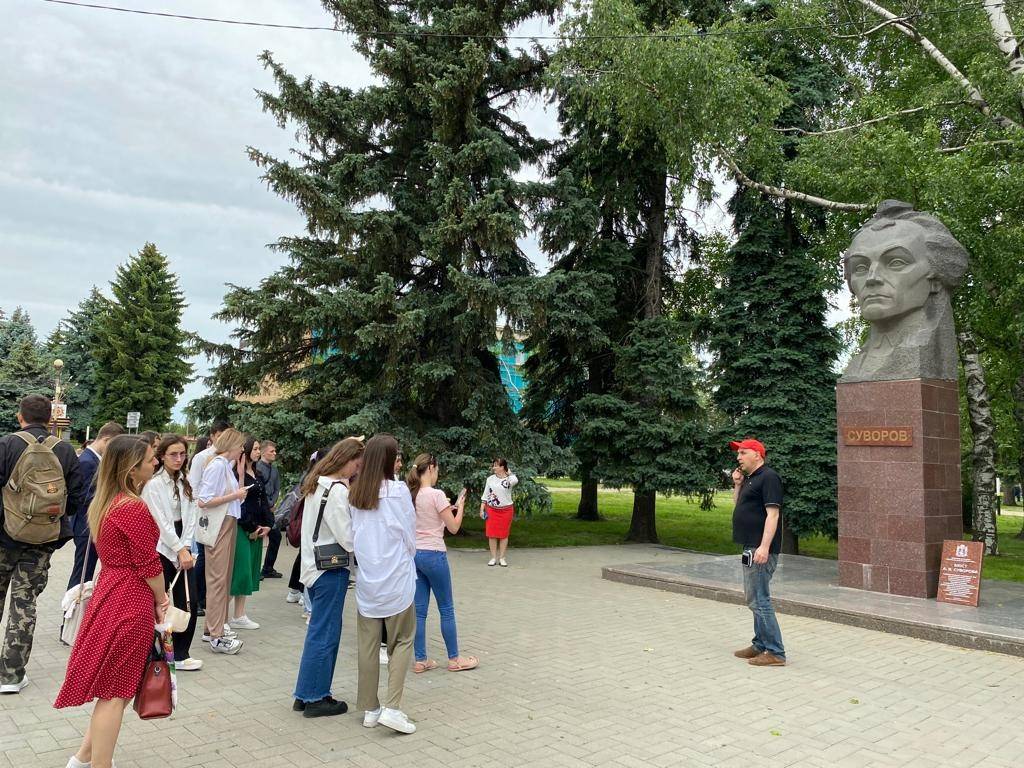 Экскурсанты посетили на Ермоловском бульваре памятник А.П. Ермолову, который внес огромный вклад в развитие города и всего Кавказского региона. Возле бюста генерала Каменева Г.Н. раскрыла основные страницы жизни известного военачальника и государственного деятеля.