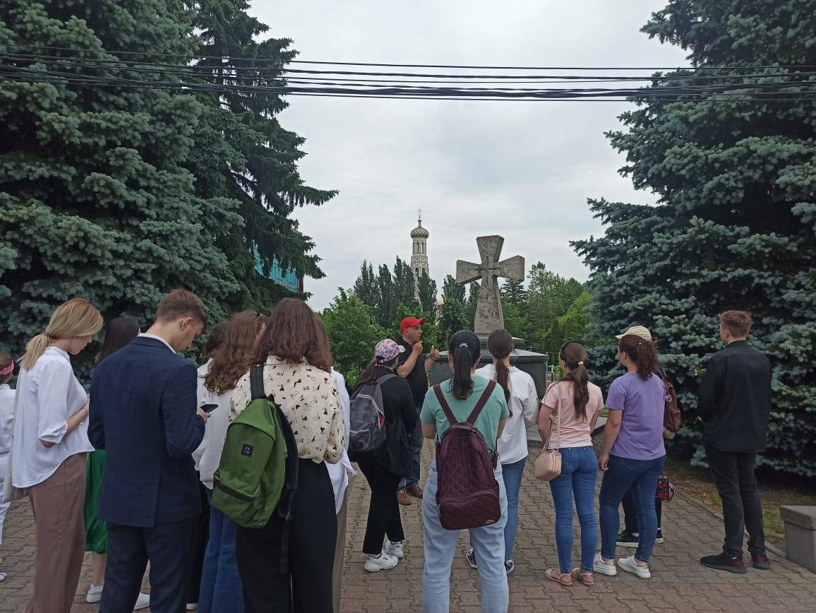 Начало экскурсионного маршрута располагалось на Крепостной горе – месте основания Ставропольской крепости. Каменева Г.Н., к.и.н., зав. отделом военной истории и патриотической работы СГМЗ, исполнительный директор РО РВИО СК, рассказала об основных этапах установления российской государственности на Северном Кавказе, об участии казачества в освоении региона.