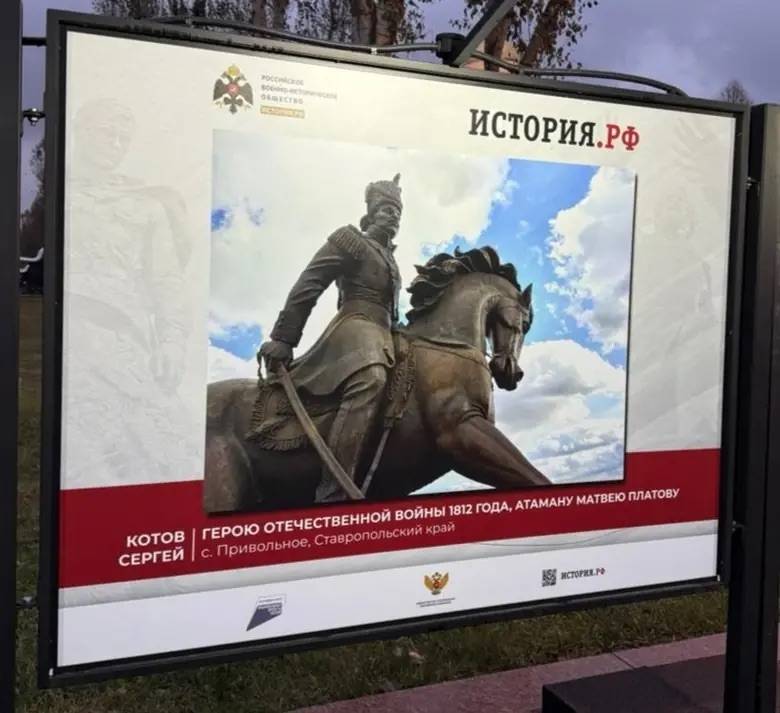 Как мы ранее писали, Котов С.Н., председатель Местного отделения Ставропольского регионального отделения Российского военно-исторического общества (РО РВИО СК) в Кочубеевском муниципальном округе, одержал победу на Фестивале творческой фотографии «ИСТОРИЯ.РФ». Его работа, запечатлевшая памятник легендарному атаману М.И. Платову, была признана лучшей в номинации «Монументальные произведения, установленные РВИО на территории Российской Федерации».
