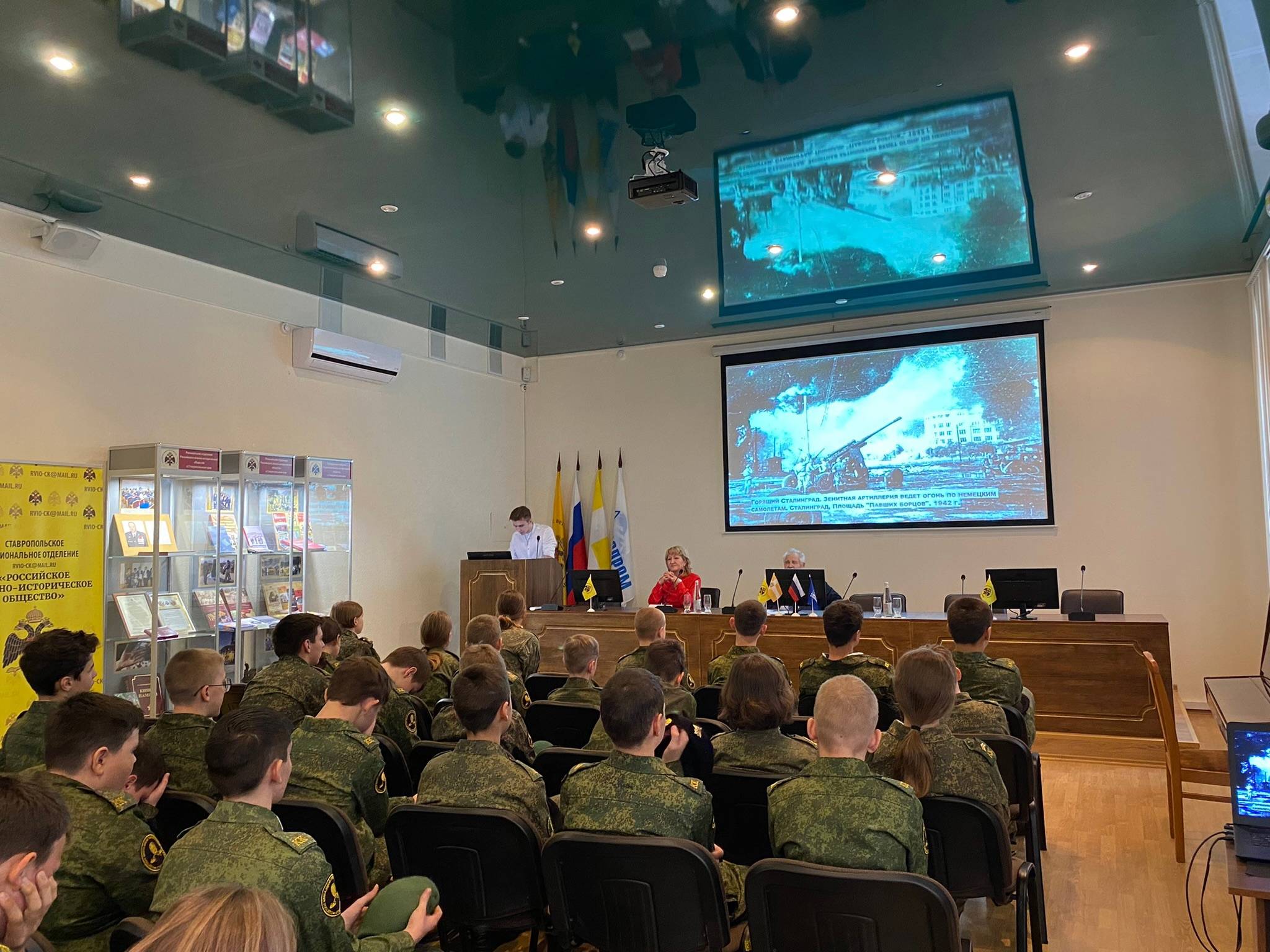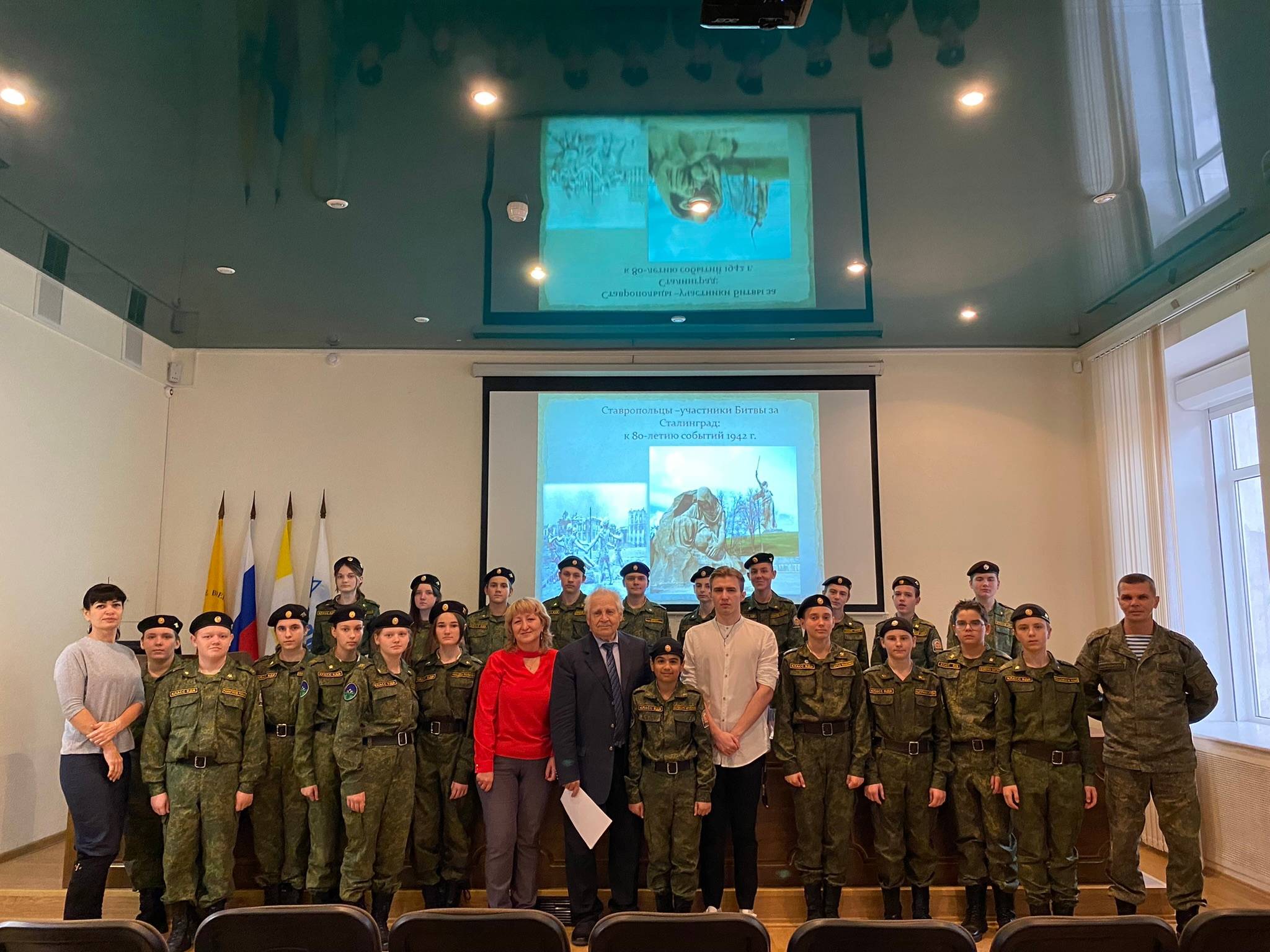 17 ноября 2022 года в конференц-зале Регионального отделения Российского военно-исторического общества в Ставропольском крае (РО РВИО СК) состоялось заседание клуба «Юный патриот» РО РВИО СК в формате круглого стола «Ставропольцы – участники Битвы за Сталинград: к 80-летию события».
