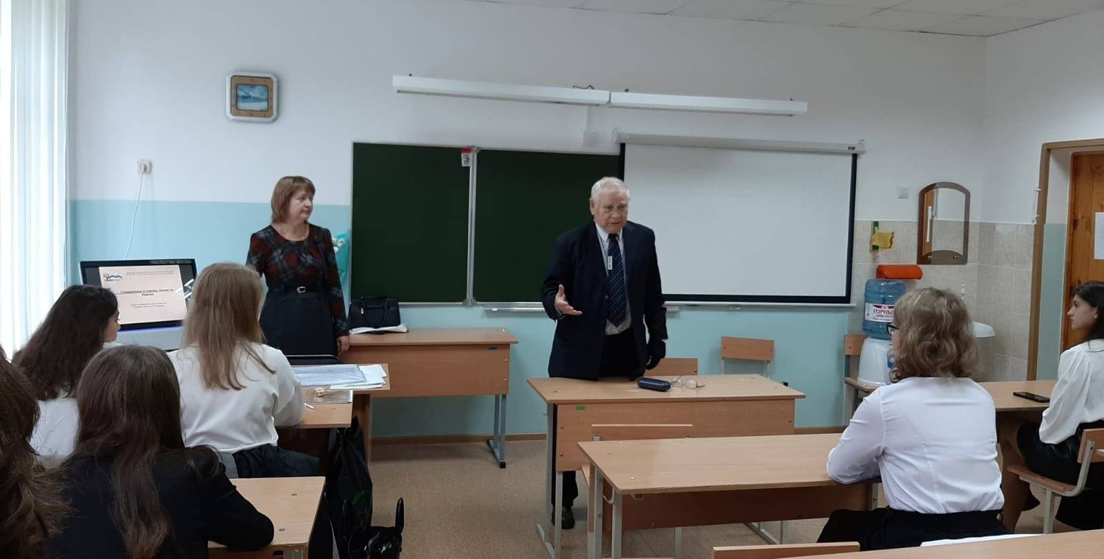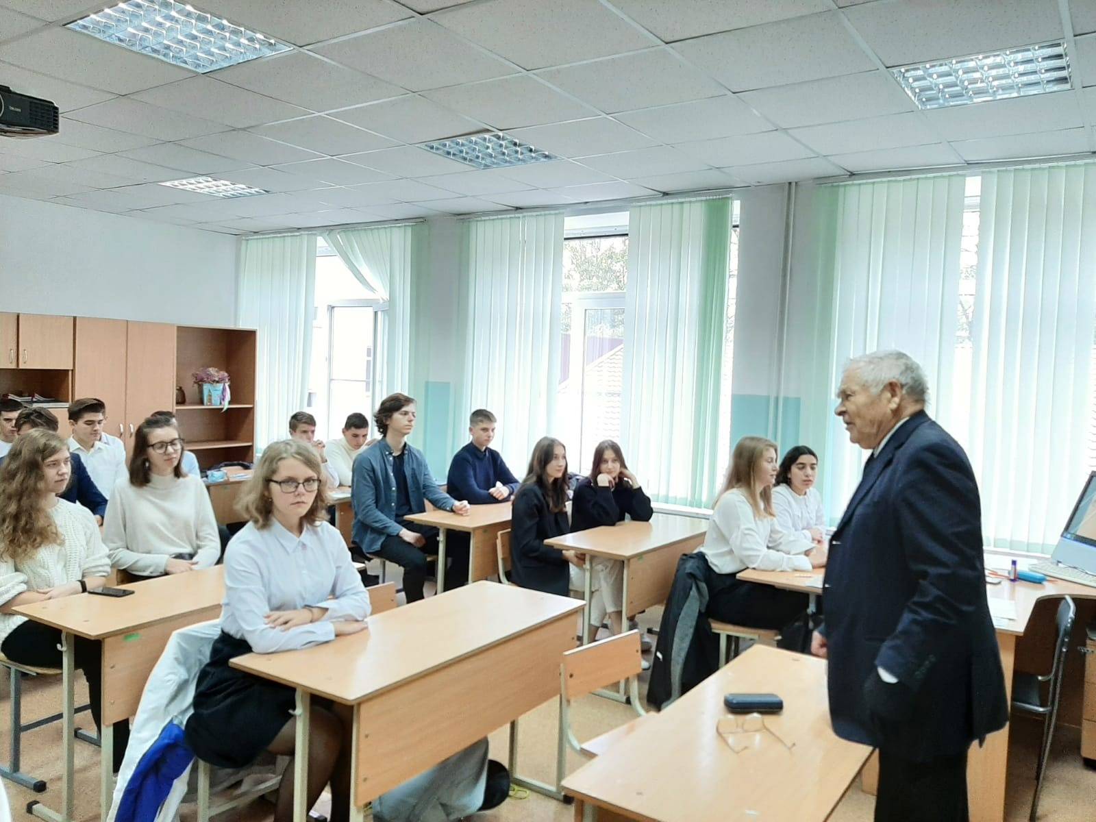 18 октября 2022 года на базе МБОУ СОШ №28 (директор – А.Н. Заверюха) состоялась встреча учащихся 10-11 классов с доктором исторических наук, Почетным профессором Северо-Кавказского федерального университета, главным научным сотрудником отдела военной истории и патриотической работы Ставропольского государственного музея-заповедника, одним из учредителей Ставропольского регионального отделения Российского военно-исторического общества (РО РВИО СК) (председатель – С.А. Шевелёв) – Николаем Дмитриевичем Судавцовым.