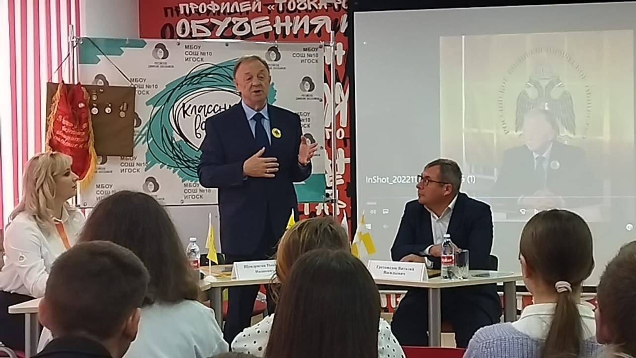 Николай Иванович рассказал о своем жизненном пути, формировании своих целей, мировосприятии и моральных принципов, поделился мнением о человеческих качествах, которые помогают достигать высот, как в карьере, так и в повседневной жизни. Он обратил внимание школьников на важность формирования у себя таких качеств, как трудолюбие, ответственность, отзывчивость, инициативность и др.