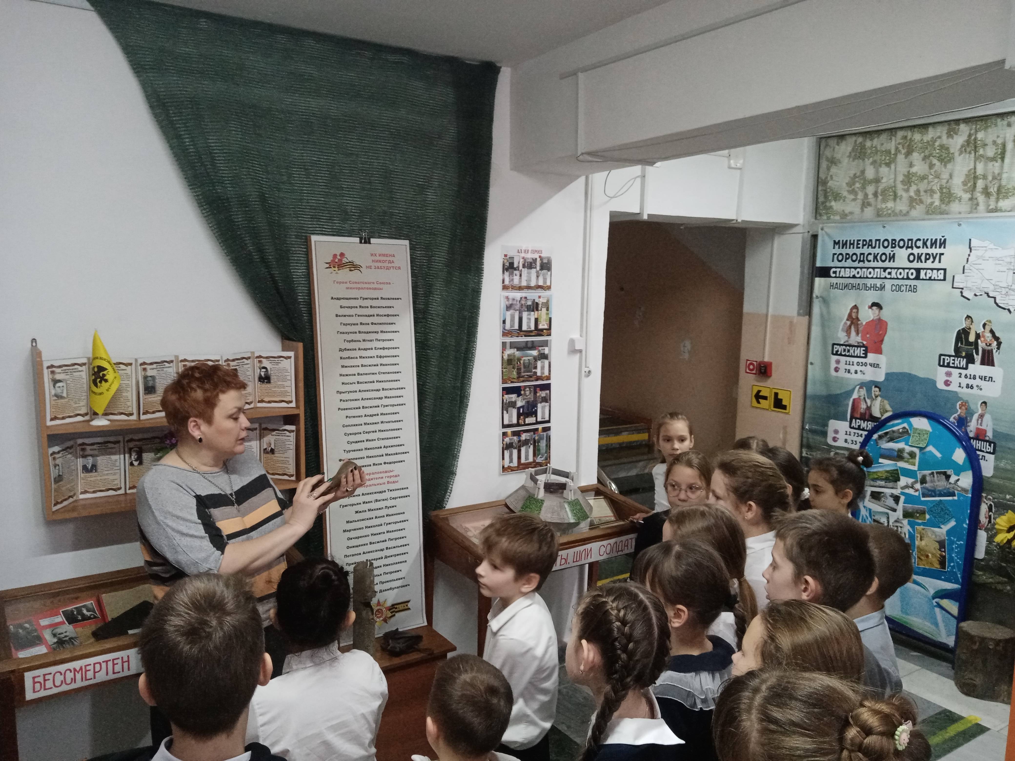 Так, ряд патриотических мероприятий провели члены Местного отделения РО РВИО СК в Минераловодском муниципальном округе (председатель – Акопян М.Б.) сотрудники Центральной городской библиотеки г. Минеральные Воды (зав. отделом краеведения – Гаркуша Е.А., член РО РВИО СК). 14 января 2025 года состоялись экскурсии для школьников по музейной экспозиции «Помним. Гордимся. Чтим», выставке «Солдатский треугольник с фронта», информационным стендам «Павшим героям посвящается». Учащиеся узнали о жизни г. Минеральные Воды в годы Великой Отечественной войны, о тяжелых месяцах оккупации, зверствах фашистов, о героях-освободителях, о судьбах земляков-фронтовиков, о памятниках, расположенных на территории города.