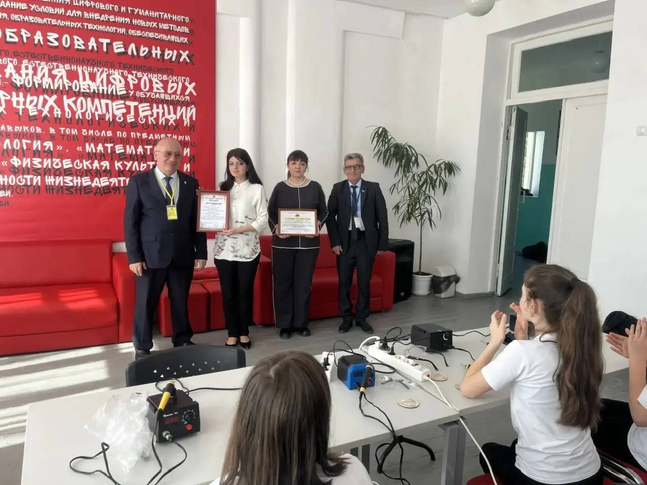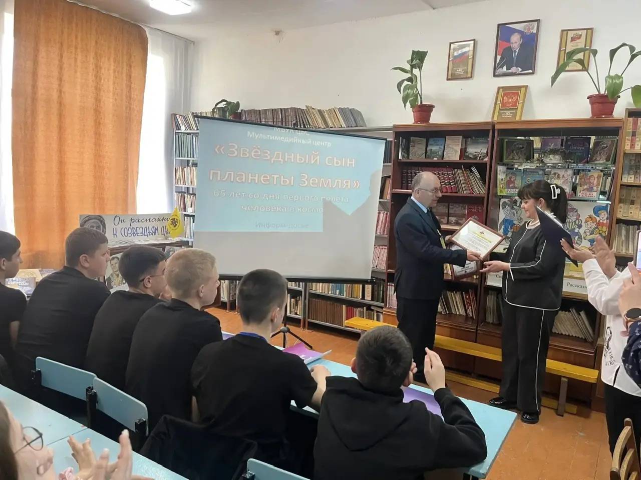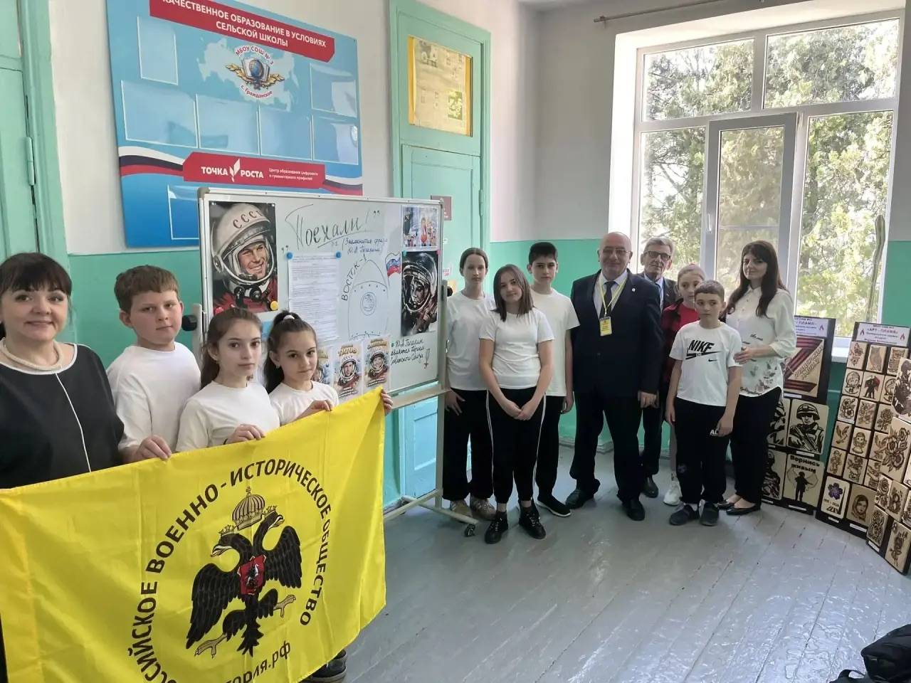 В рамках Недели космоса председатель Местного отделения РО РВИО СК в Минераловодском муниципальном округе Акопян М.Б. стал участником «Классных встреч» в МБОУ СОШ № 3 с. Гражданского (директор – Рыбченко Н.Н., член РО РВИО СК). Для школьников сотрудники мультимедийного центра Центральной городской библиотеки им. Р.Н. Котовской г. Минеральные Воды подготовили презентацию «Звёздный сын планеты Земля», посвящённую 65-летию полёта Юрия Гагарина. Кульминацией встречи стал творческий мастер-класс: педагог дополнительного образования студии «Арт-Пламя» Асирян М.А. обучила ребят технике выжигания по дереву, создавая изображение великого космонавта. Руководитель кружка «Умелые ручки» Асирян А.М. преподнёс школе авторский подарок – рисунок на зеркале с портретом Юрия Гагарина. В завершение встречи Михаил Борисович вручил директору школы благодарственное письмо от РО РВИО СК – за активную работу по патриотическому воспитанию подрастающего поколения и укрепление межнациональных отношений в Год единства народов России.