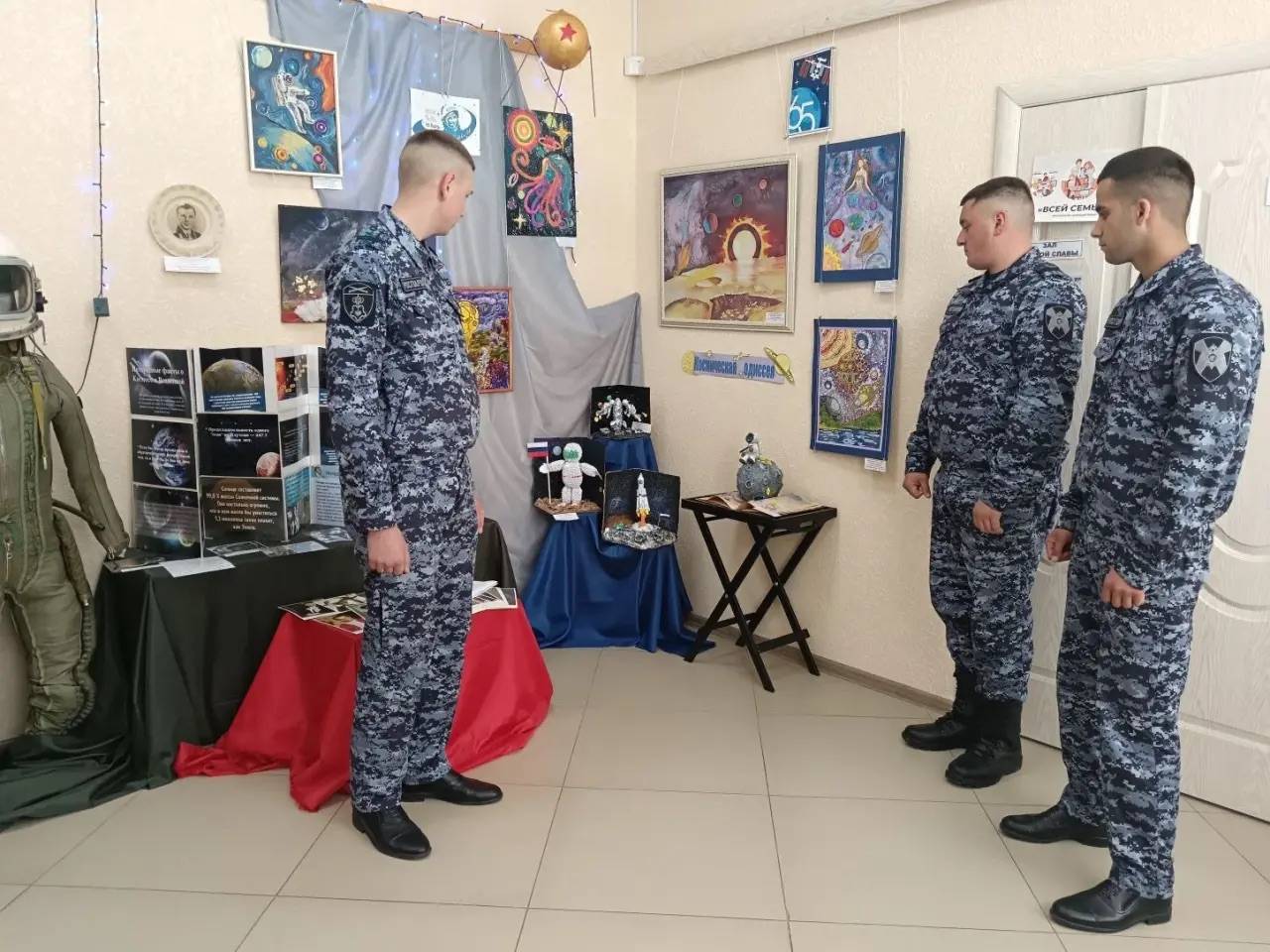 В рамках Недели космоса в Новоалександровском районном музее организована выставка творческих работ воспитанников Детской художественной школы г. Новоалександровска «Космическая одиссея» и подготовлена тематическая выставка «Космос – далёкий и близкий», на которой представлены фотографии первого отряда космонавтов, газетные статьи, рассказывающие о том памятном дне, размещены интересные факты о космосе и вселенной. Одними из первых их смогли увидеть получатели услуг отделения дневного пребывания Раздольненского территориального отдела. Младший научный сотрудник Герасимова М.Ф. и экскурсовод Скрипникова Л.А., члены Ставропольского регионального отделения Российского военно-исторического общества (РО РВИО СК), провели для гостей увлекательную экскурсию. Особый интерес у гостей вызвал рассказ о поистине уникальном экспонате музея – высотно-компенсирующем комбинезоне (ВВК). Этот предмет экипировки был передан в фонды музея лётчиком-испытателем В.М. Владимировым, сыном Героя Советского Союза М.Г. Владимирова. В этот же день тематические музейные выставки посетили и сотрудники Межрайонного отдела вневедомственной охраны по Новоалександровскому городскому округу (МОВО) – филиала Федерального государственного казённого учреждения «Управление вневедомственной охраны войск национальной гвардии Российской Федерации по Ставропольскому краю».