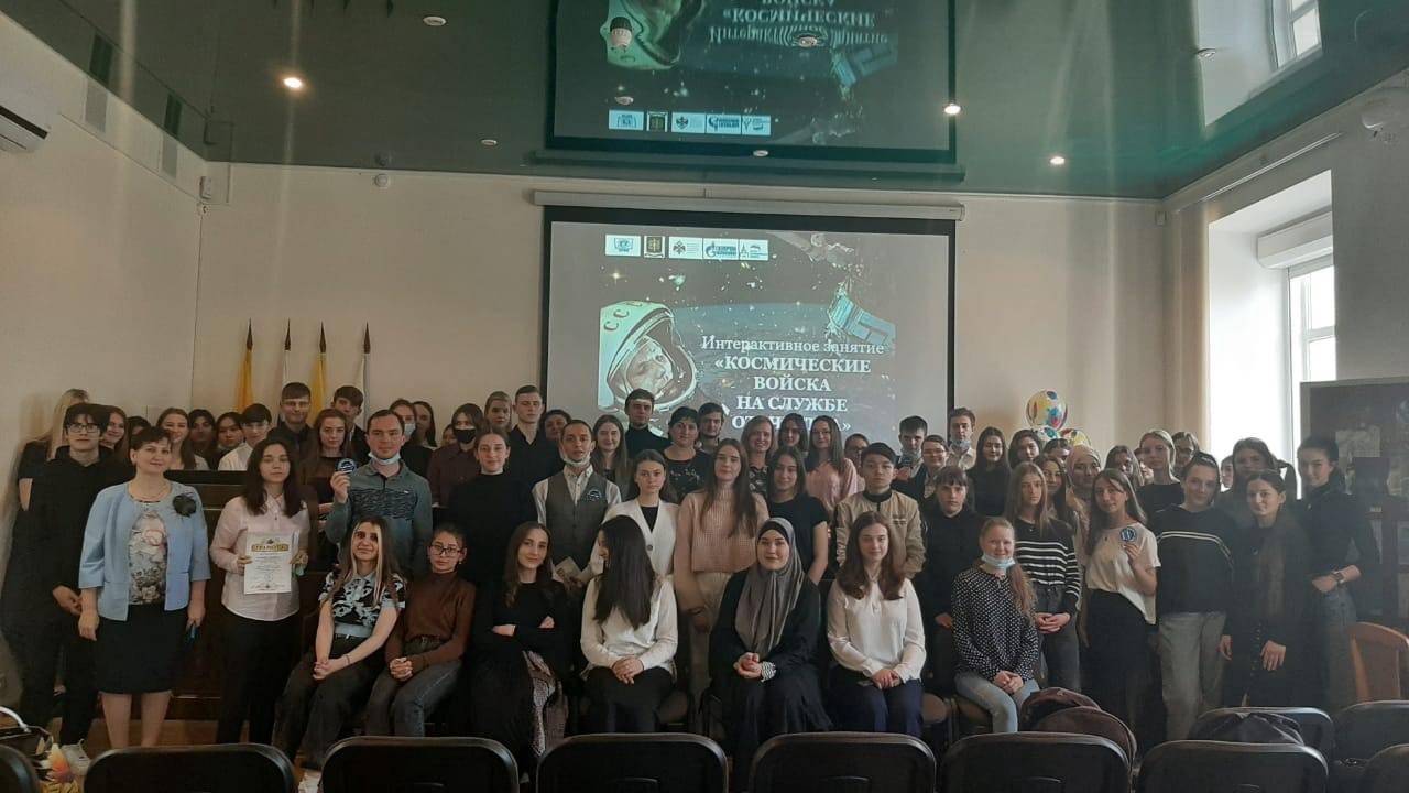 8 апреля 2022 года в 14:30 в конференц-зале Ставропольского регионального отделения Российского военно-исторического общества (РО РВИО СК) состоялось занятие для студентов города Ставрополя «Космические войска на службе Отечества».
