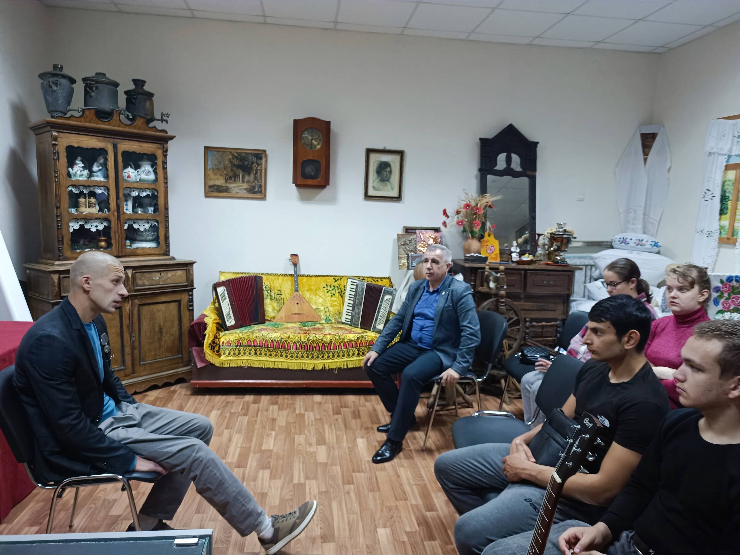 3 ноября 2023 года, накануне Дня народного единства, на базе Кочубеевского историко-краеведческого музея состоялась встреча «Слава России – в единстве народов» со студентами Кочубеевского гуманитарного-технического колледжа. На встречу были приглашены председатель фонда поддержки участников СВО «Защитники Отечества» в Кочубеевском округе А. Криницын и ветеран боевых действий в зоне специальной военной операции М. Кузнецов. Вела встречу Л.Н. Солопова. Она рассказала о том, какие исторические корни имеет День народного единства и о его важности сегодня. В ходе мероприятия молодые люди смогли побеседовать с ветераном боевых действий, которой участвовал в освобождении г. Артемовска административного центра Артемовского района Донецкой Народной Республики Российской Федерации, и задать интересующие их вопросы.