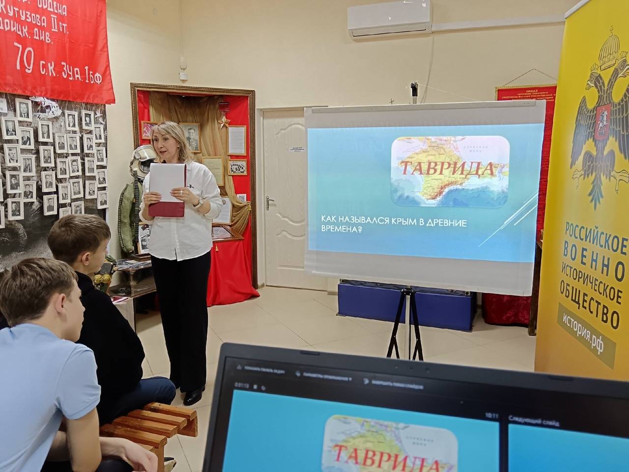 В ходе урока особое внимание было уделено военно-политической истории Крыма, а также его геополитической роли в разные периоды истории России. Сотрудники музея, Герасимова М.Ф. и Скрипникова Л.А., члены РО РВИО СК, подготовили интересный наглядный материал о природе, фауне и достопримечательностях полуострова. Для ребят была проведена викторина «10 интересных фактов о Крыме», в ходе которой они имели возможность поделиться своими знаниями о Крымском полуострове и его истории. В результате мероприятия ребята смогли глубже оценить уникальность этого региона и его важность для нашей страны.