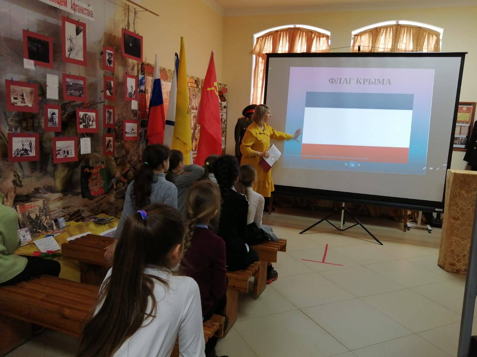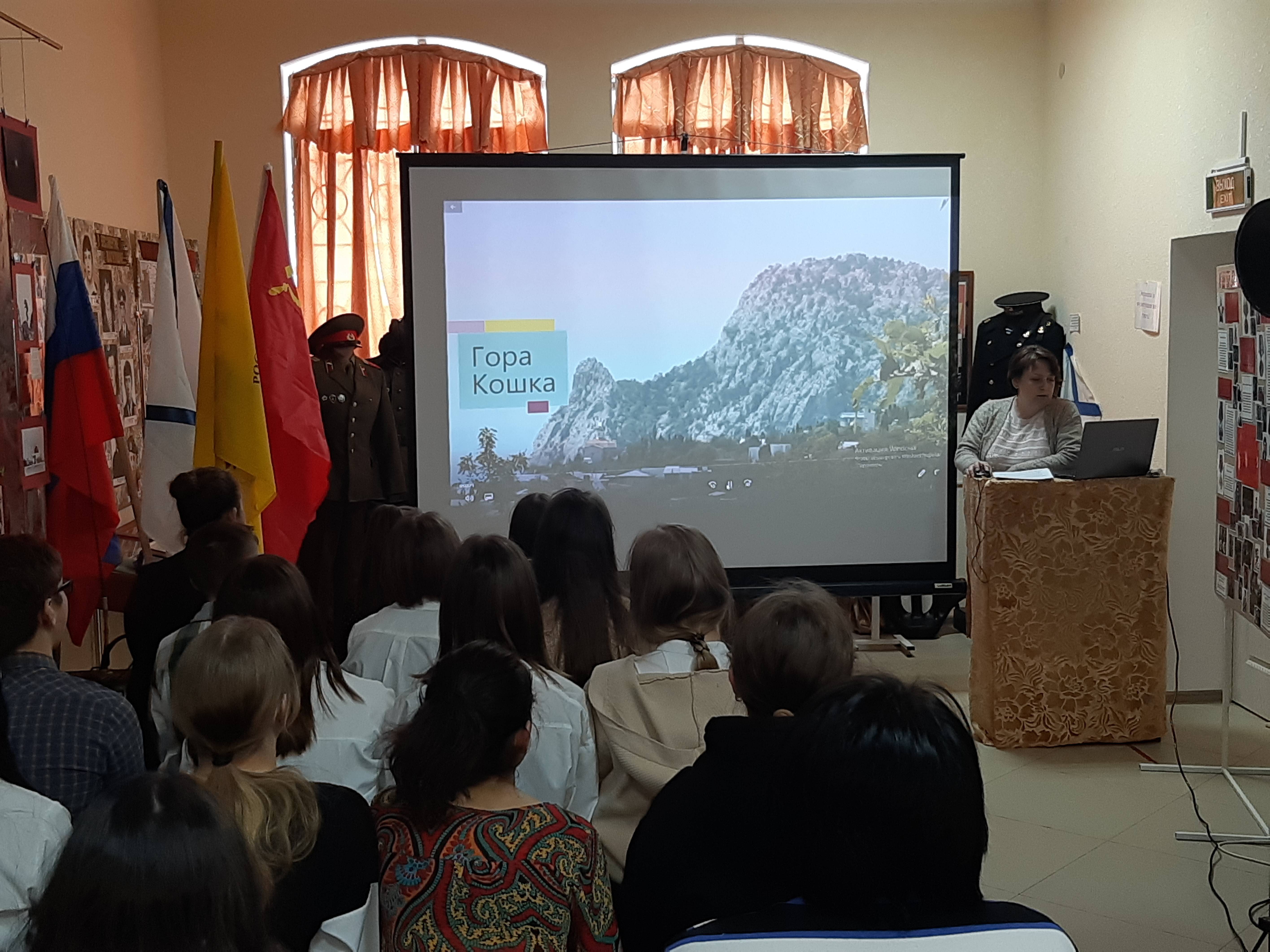Сотрудники музея познакомили школьников с многовековой историей Крымского полуострова, главными достопримечательностями региона. Особое внимание было уделено героической обороне Севастополя, освобождению Крыма в годы Великой Отечественной войны. В этих событиях приняли активное участие уроженцы Новоалександровского района, с судьбами которых учащиеся ознакомились на уроке. школьникам показали награды одного из участников битвы за Крым - Горового Василия Александровича.