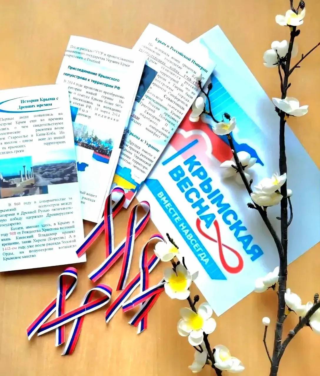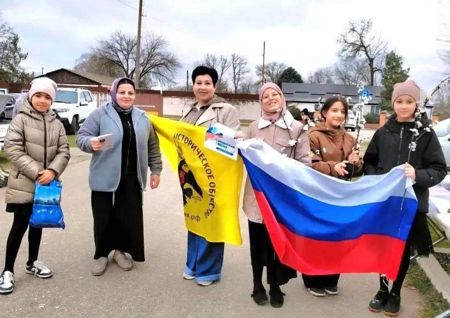 В Курском муниципальном округе (председатель Местного отделения РО РВИО СК – Жулина Г.В.) в этот день состоялось сразу несколько мероприятий. Так, художественный руководитель Мирненского СДК, активист движения «Волонтёры Победы» И.В. Чеченева, член РО РВИО СК, вместе с юными участниками клубных формирований вышли на улицы посёлка, чтобы вручить прохожим ленточки-триколоры. Во время акции школьники рассказывали жителям историю возвращения полуострова в родную гавань. Другим важным мероприятием стала патриотическая акция «Из Крыма с любовью», организованная заведующим Мирненского СДК, активистом РО РВИО СК А.А. Шаповаловой. В рамках мероприятия школьники узнали, как Крым воссоединился с Россией, почему этот день так важен для нашей страны. Также юные патриоты написали участникам Специальной военной операции письма и открытки со словами благодарности и поддержки, которые в скором времени будут отправлены на передовую вместе с гуманитарной помощью.