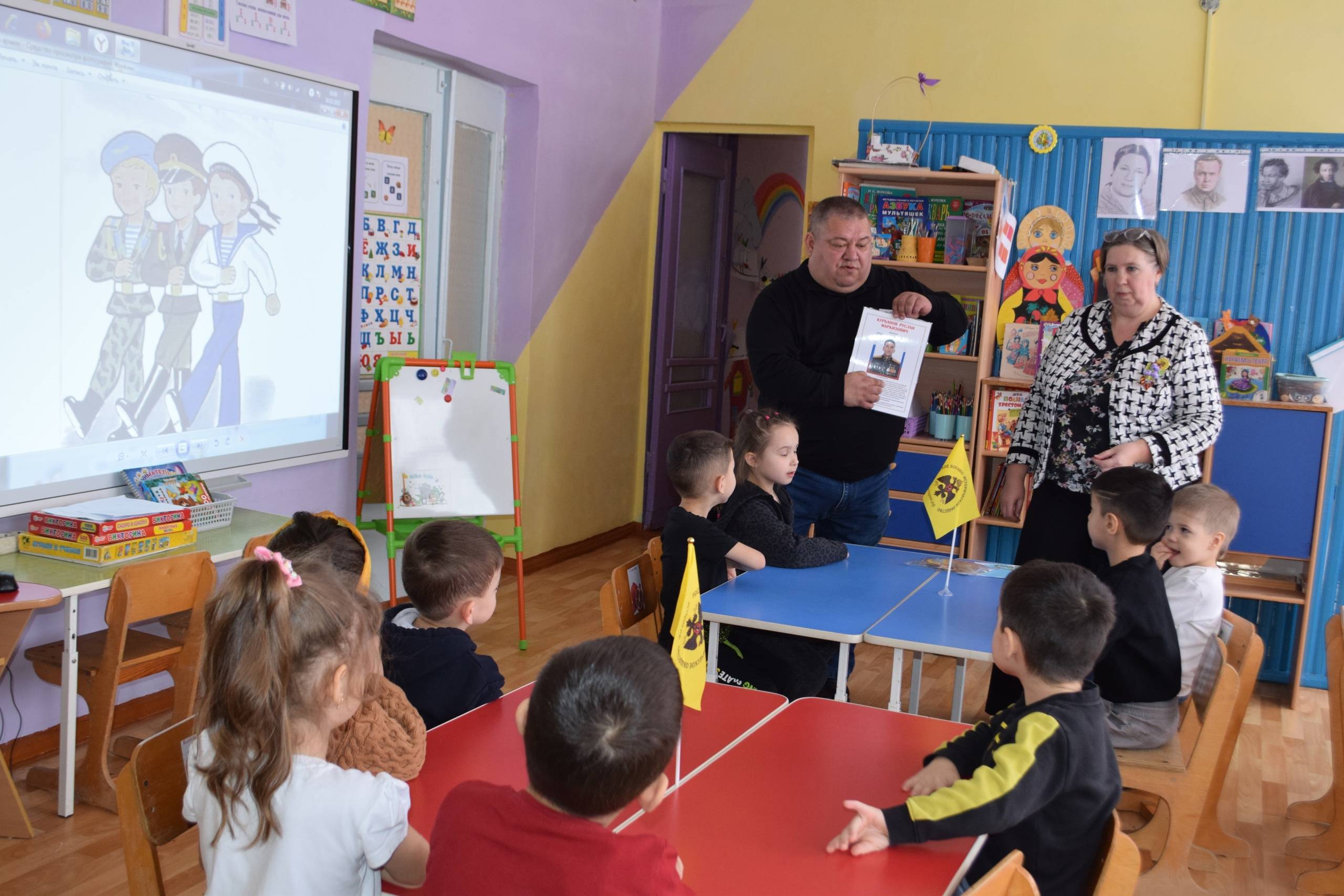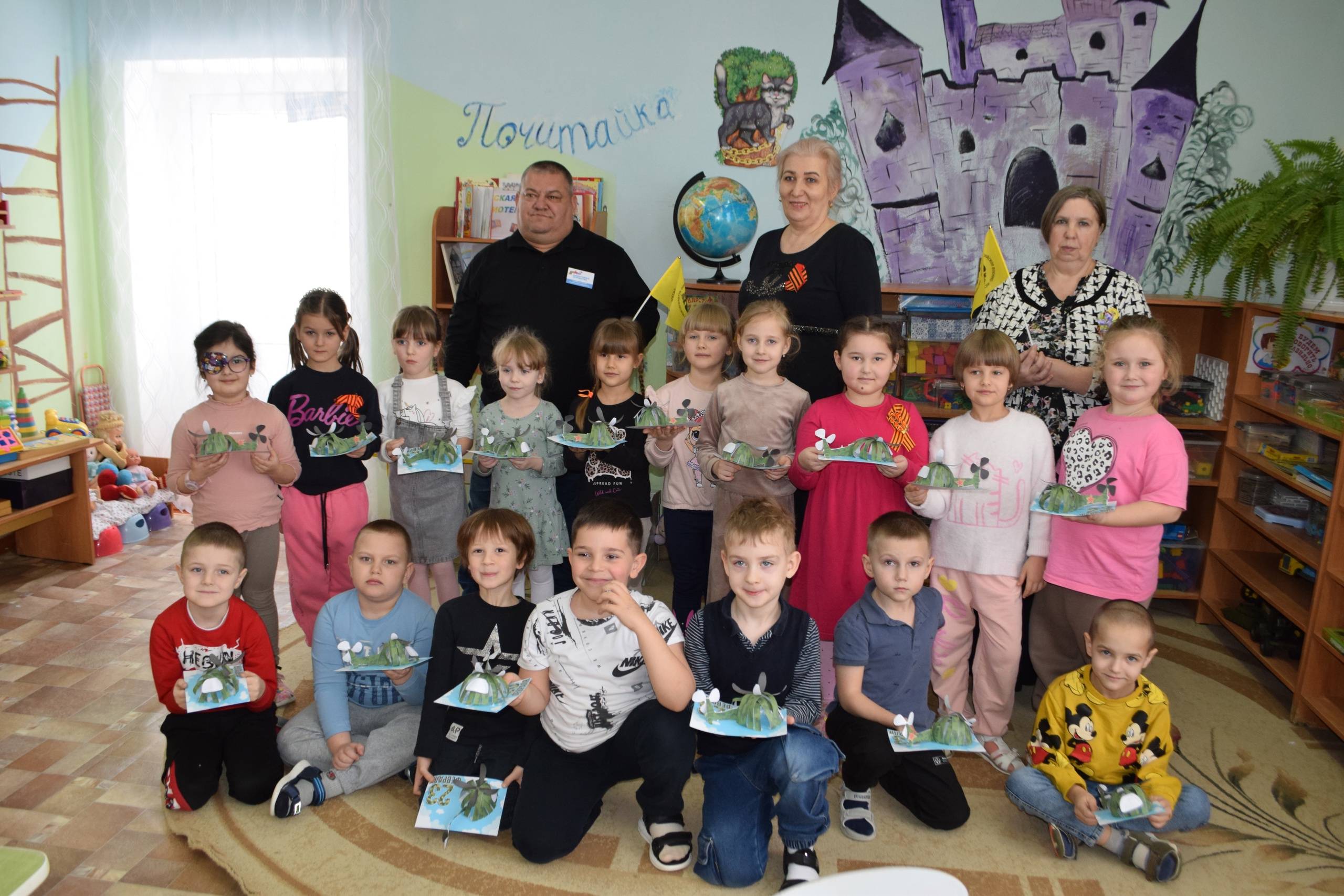 18 февраля 2025 г. для воспитанников детского сада «Колокольчик» с. Грачёвка Грачёвского муниципального округа состоялся познавательный мастер-класс «Мир в небе для юных читателей». Необычные «вертолётные приключения» организовали для дошкольников члены Местного отделения Ставропольского регионального отделения Российского военно-исторического общества (РО РВИО СК) в Грачёвском муниципальном округе (председатель – Степаненко Н.И.) Моргунова И.Е., заведующая Грачёвской Центральной детской библиотекой, и Гадяцкий С.Г., социальный координатор фонда «Защитники Отечества». В ходе мероприятия дети узнали об истории создания вертолёта, о том, в каких областях человеческой деятельности применяется этот вид техники. Ребята смогли окунуться в мир военной истории и узнать о подвигах земляков-защитников Отечества, принимающих участие в специальной военной операции. Девчонки и мальчишки познакомились с Чубой – известным всем героем Чебурашкой, который стал талисманом для участников СВО, и получили в подарок открытки-раскраски с изображением этого героя. В завершение мероприятия на столы ребят «приземлились» миниатюрные модели вертолётов, которые они смастерили своими руками. Мастер-класс для воспитанников детского сада вышел не только творческим, но и информативным.