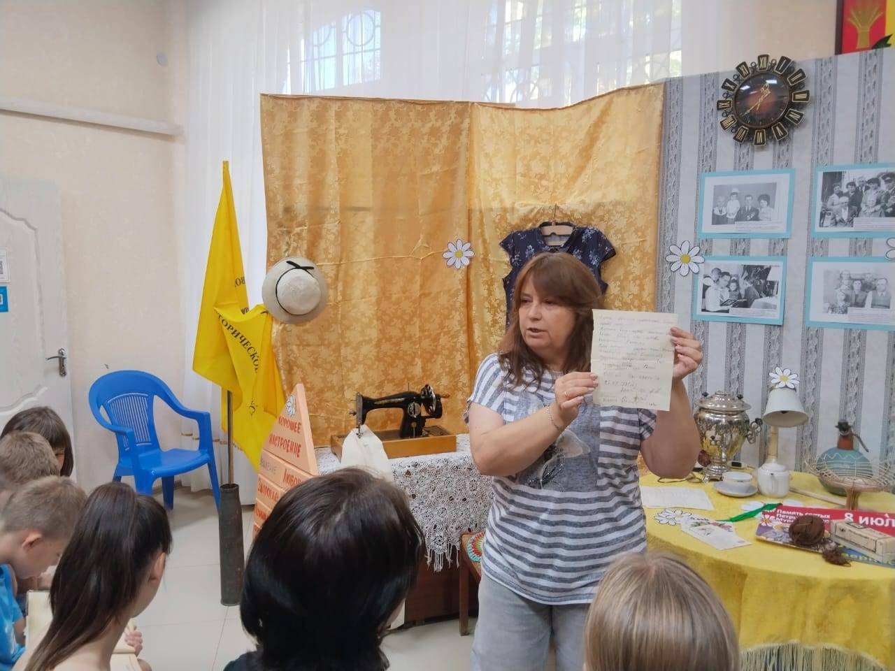 13 августа 2025 года экскурсовод Новоалекандровского районного историко-краеведческого музея, член Регионального отделения Российского военно-исторического общества в Ставропольском крае (РО РВИО СК) Скрипникова Л.А. провела экскурсию по музейной экспозиции для воспитанников детского дома «Аврора» ст. Григорополисской.
