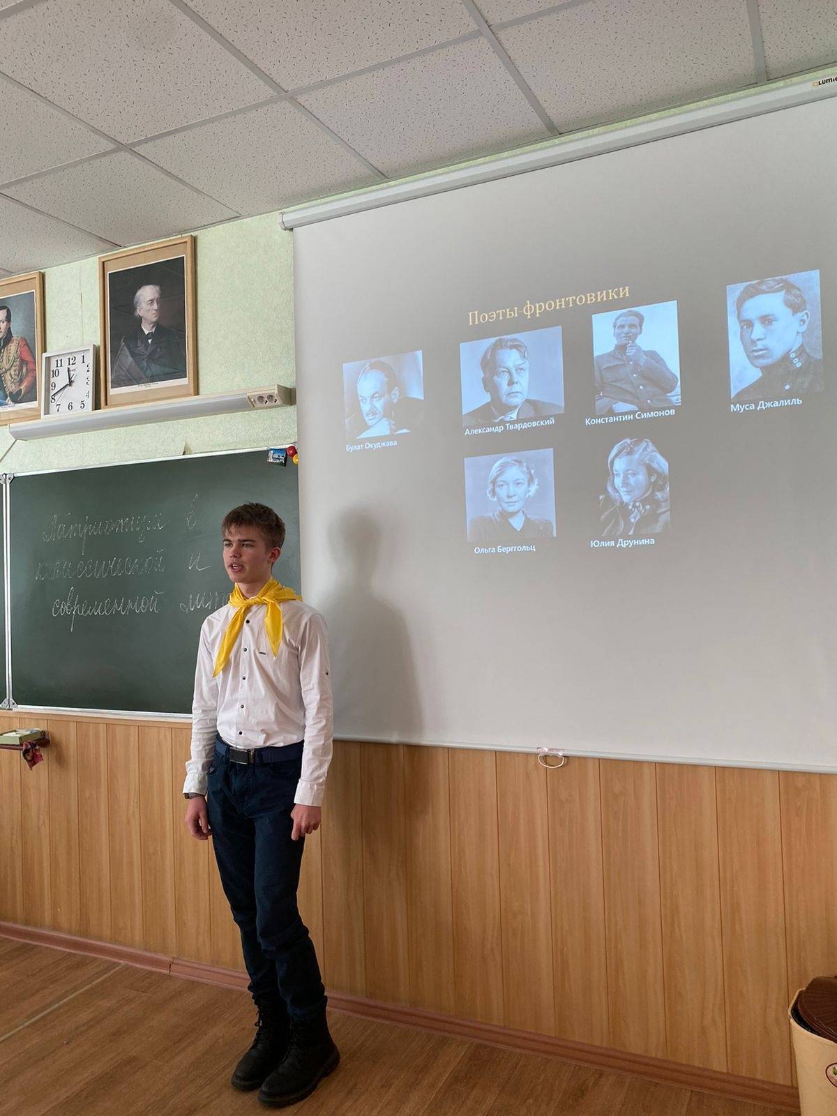 16 декабря 2022 года на базе МБОУ СОШ №7 г. Ставрополя состоялось заседание клуба «Юный патриот» (руководитель – Лифанова Е.А.) Регионального отделения Российского военно-исторического общества в Ставропольском крае (председатель – Шевелев С. А.) на тему «Патриотизм в классической и современной литературе».