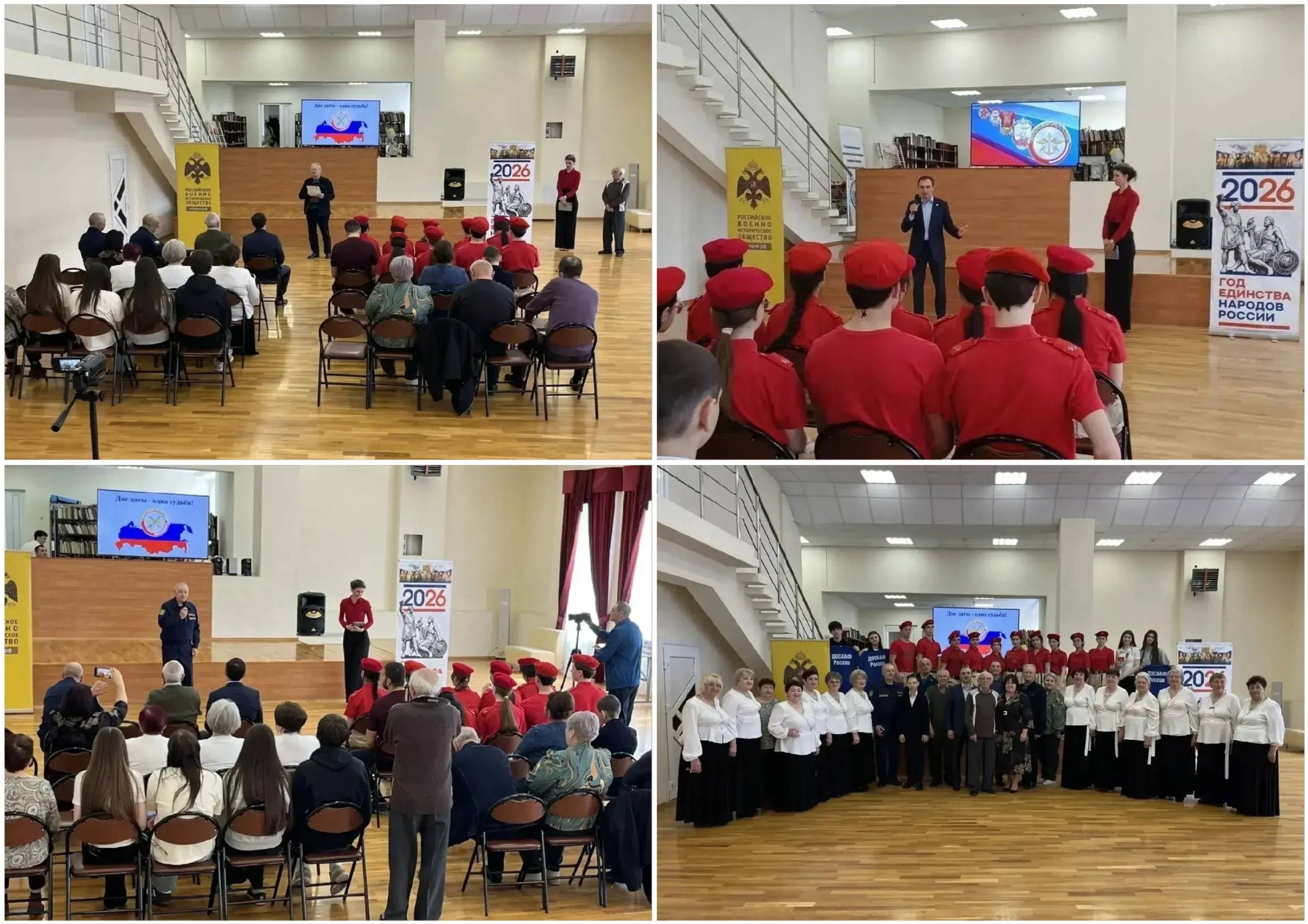 10 апреля 2026 г. в Центральной районной библиотеке Курского округа прошло мероприятие, посвящённое двум событиям – 100-летию ДОСААФ России и 50-летию трудовой деятельности А.Я. Башарули, руководителя местного отделения ДОСААФ России. В числе почётных гостей мероприятия были Г.В. Жулина, начальник управления культуры, председатель Местного отделения РО РВИО СК в Курском муниципальном округе, и Т.В. Волкова, директор Центра дополнительного образования для детей, член РО РВИО СК. Они поздравили присутствующих, подчеркнув важную роль ДОСААФ в патриотическом воспитании молодёжи. В рамках мероприятия состоялось вручение наград специалистам, а также благодарственных писем руководителям учреждений и юнармейцам. Юнармейцы и творческие коллективы Дома культуры с. Эдиссия порадовали гостей музыкальными и поэтическими номерами.