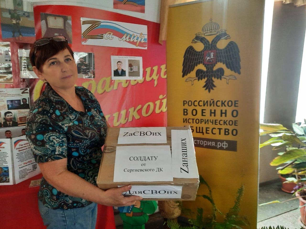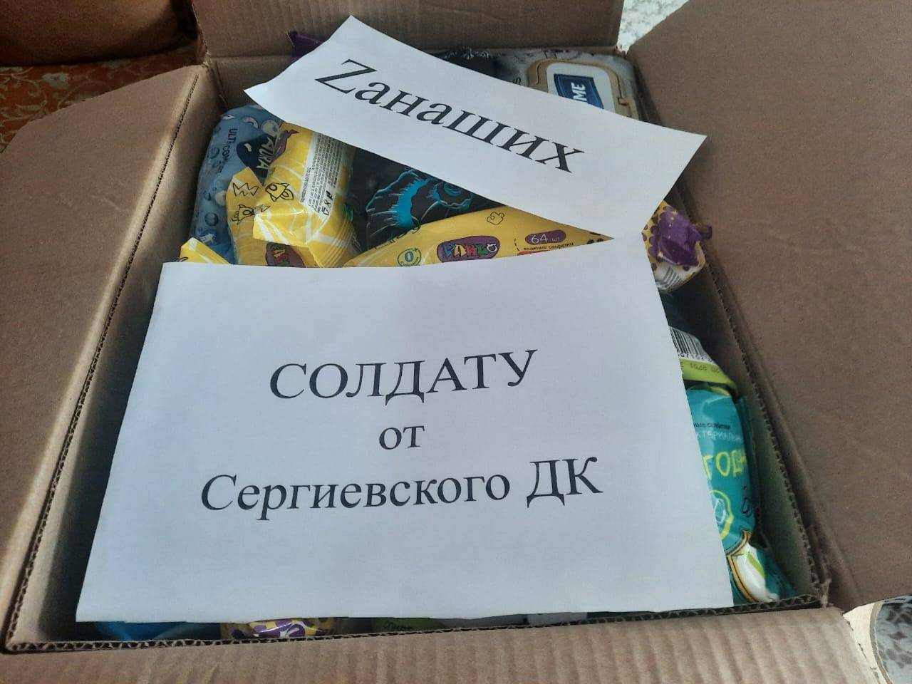 В преддверии памятной даты члены Местного отделения РО РВИО СК в Грачёвском муниципальном округе (председатель – Степаненко Н.И.) организовали сбор посылки для земляков, которые, как и их деды и прадеды в годы Великой Отечественной войны, сегодня выполняют воинский долг. Жители с. Сергиевского собрали гостинцы для своего односельчанина и его сослуживцев с тёплыми пожеланиями скорейшего возвращения домой с победой.