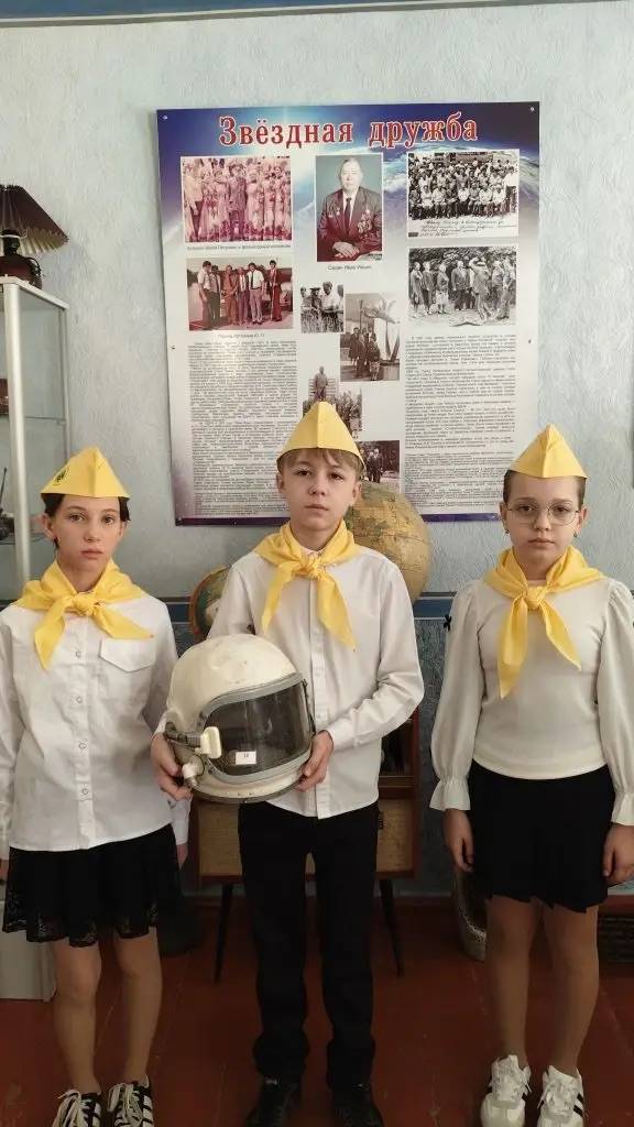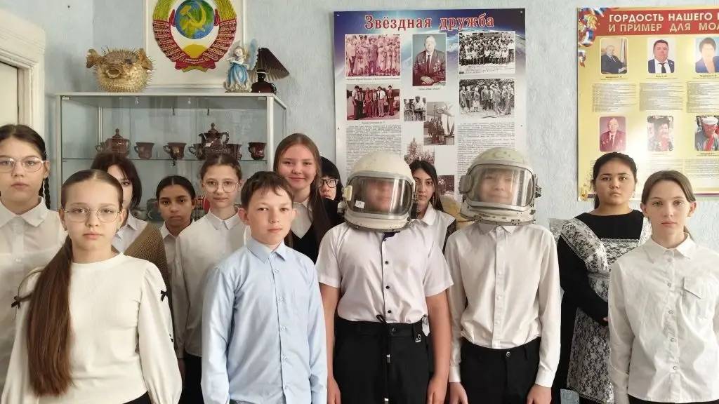 В преддверии 12 апреля – Дня космонавтики – учащиеся МБОУ СОШ №8 им. А.В. Грязнова с. Тищенского (директор – Князева С.С., член Местного отделения РО РВИО СК в Изобильненском муниципальном округе (председатель – Щендригин Н.И.)), члены клуба «Юный патриот» РО РВИО СК, посетили школьный историко-краеведческий музей «Истоки» №7315 им. М.Ф. Гусева (руководитель – Мирошниченко Т.Н., член РО РВИО СК). Экскурсия открыла удивительную страницу истории: в с. Тищенском в 1970-е гг. завязалась дружба между космонавтами и работниками рыбоводческого совхоза «Ставропольский». Космонавты любили копчёного толстолобика, которого поставляли в Москву. К Первому мая и Новому году в Звёздный городок отправлялись подарки – копчёные пласты толстолобика. В свою очередь, космонавты помогали развитию племзавода. В 1981 г. жители Тищенского принимали в День рыбака лётчика-космонавта Юрия Артюхина. В 1988 г. экипаж космического корабля «Союз-14» в составе лётчиков-космонавтов Юрия Артюхина и Павла Поповича посетили район и подарили музею фотографию с надписью. В честь дружбы космонавтов и работников совхоза в селе названы две улицы, а в музее хранятся артефакты тех времён.