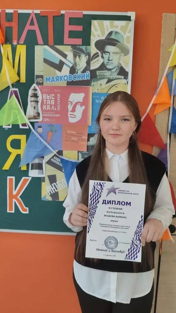 Юная поэтесса Варвара Иськова, ученица МБОУ СОШ №8 им. А.В. Грязнова с. Тищенского, член клуба «Юный патриот» РО РВИО СК, стала победителем Межрегионального конкурса юных поэтов, посвящённого Всемирному дню поэзии. Поздравляем Варвару и желаем дальнейших успехов в творчестве!