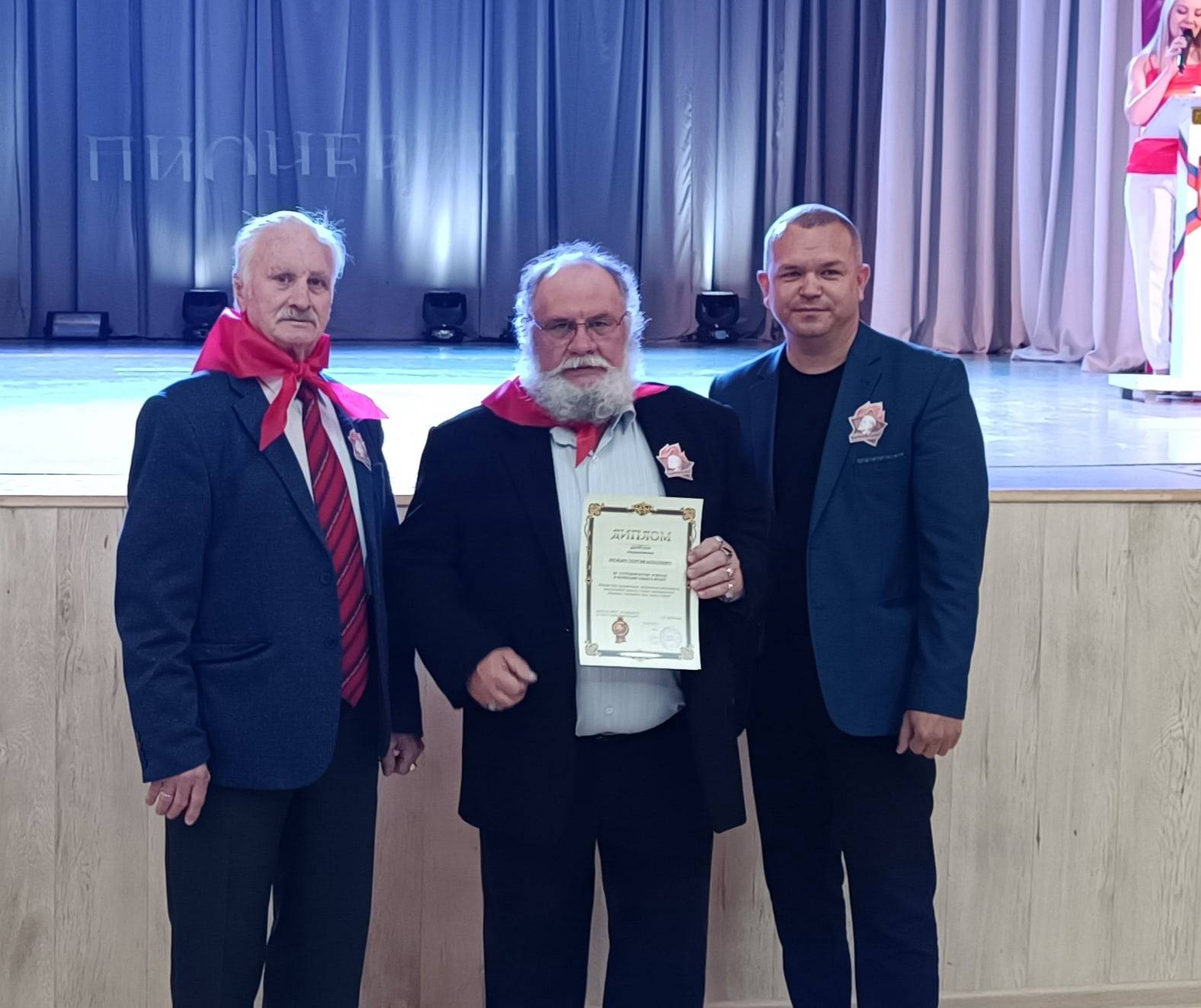 В конце мероприятия все гости праздника спели гимн пионерии вместе с вокальной группой Дворца культуры "Антураж".