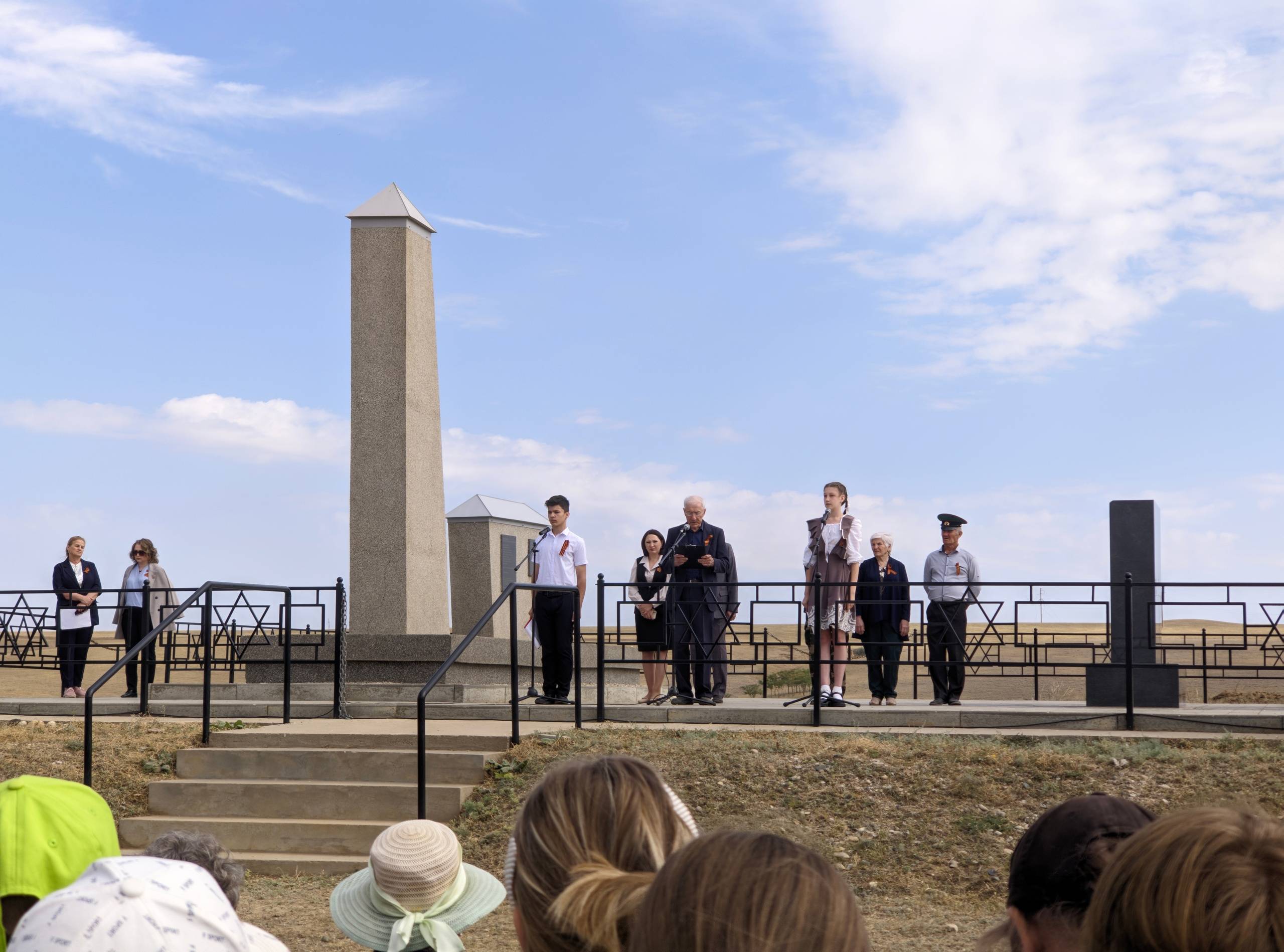 В исполнении школьников прозвучали стихотворения, посвященные Холокосту. Завершился митинг возложением цветов к мемориалу и минутой молчания в память жертв фашистов.