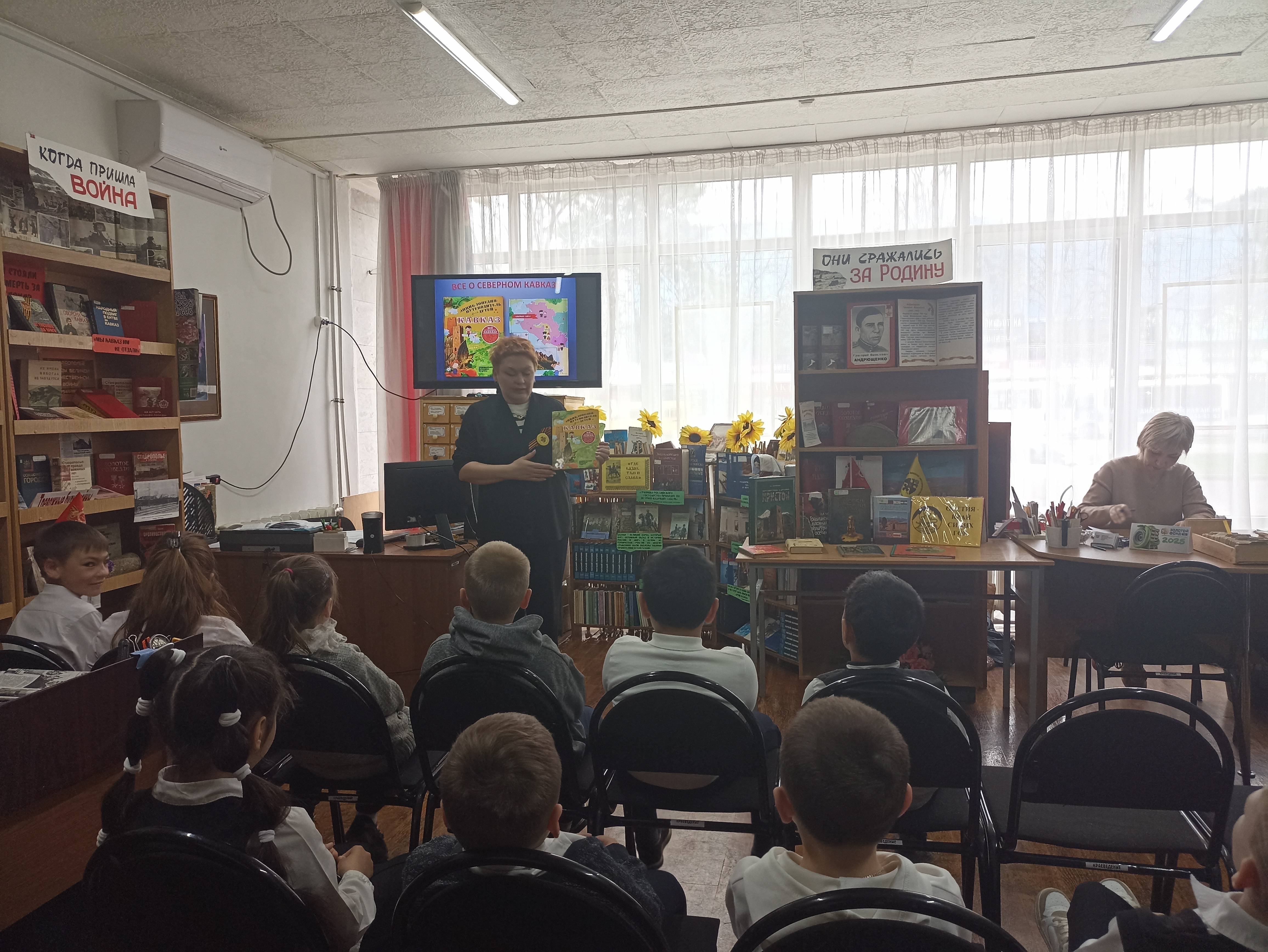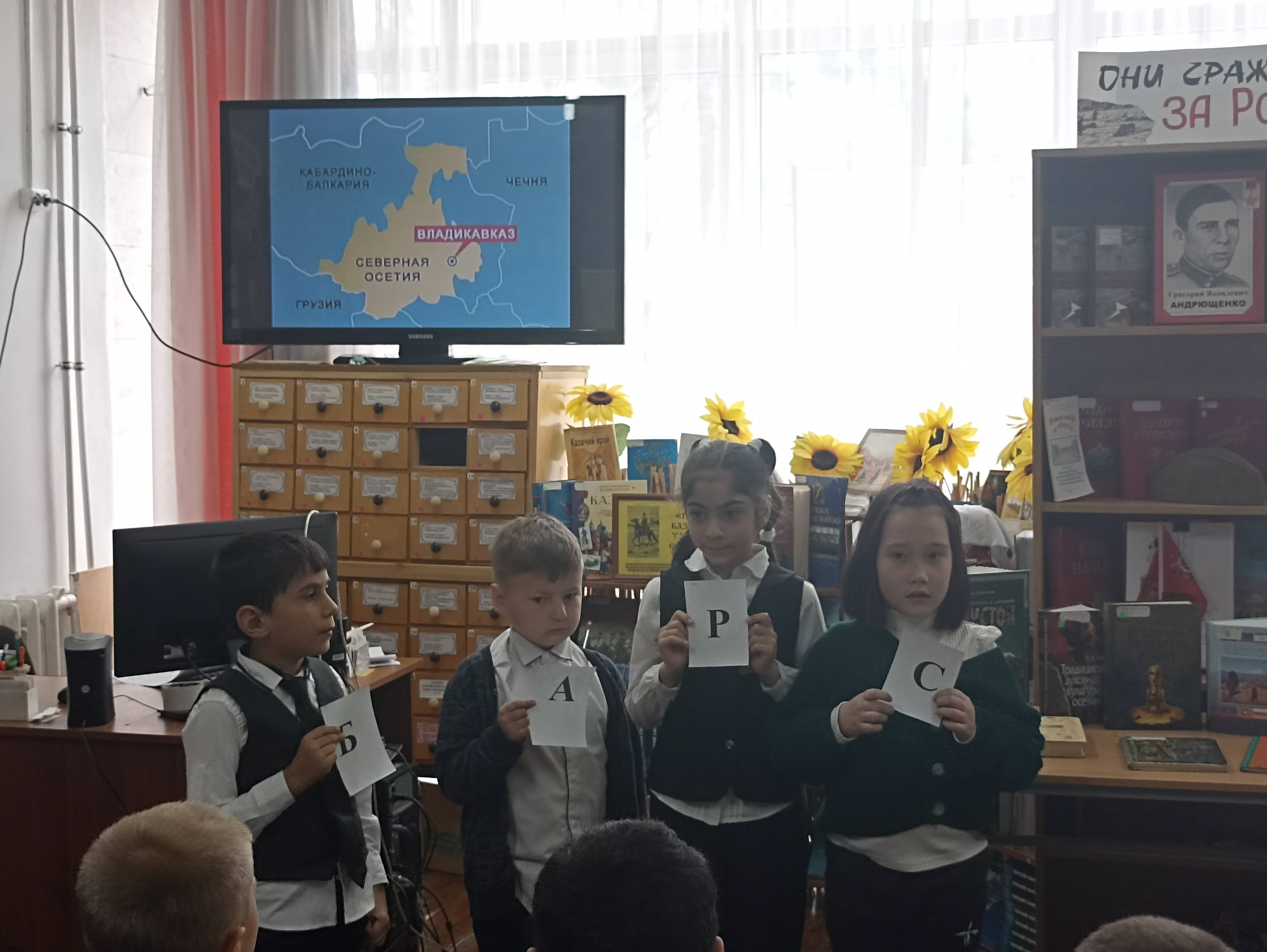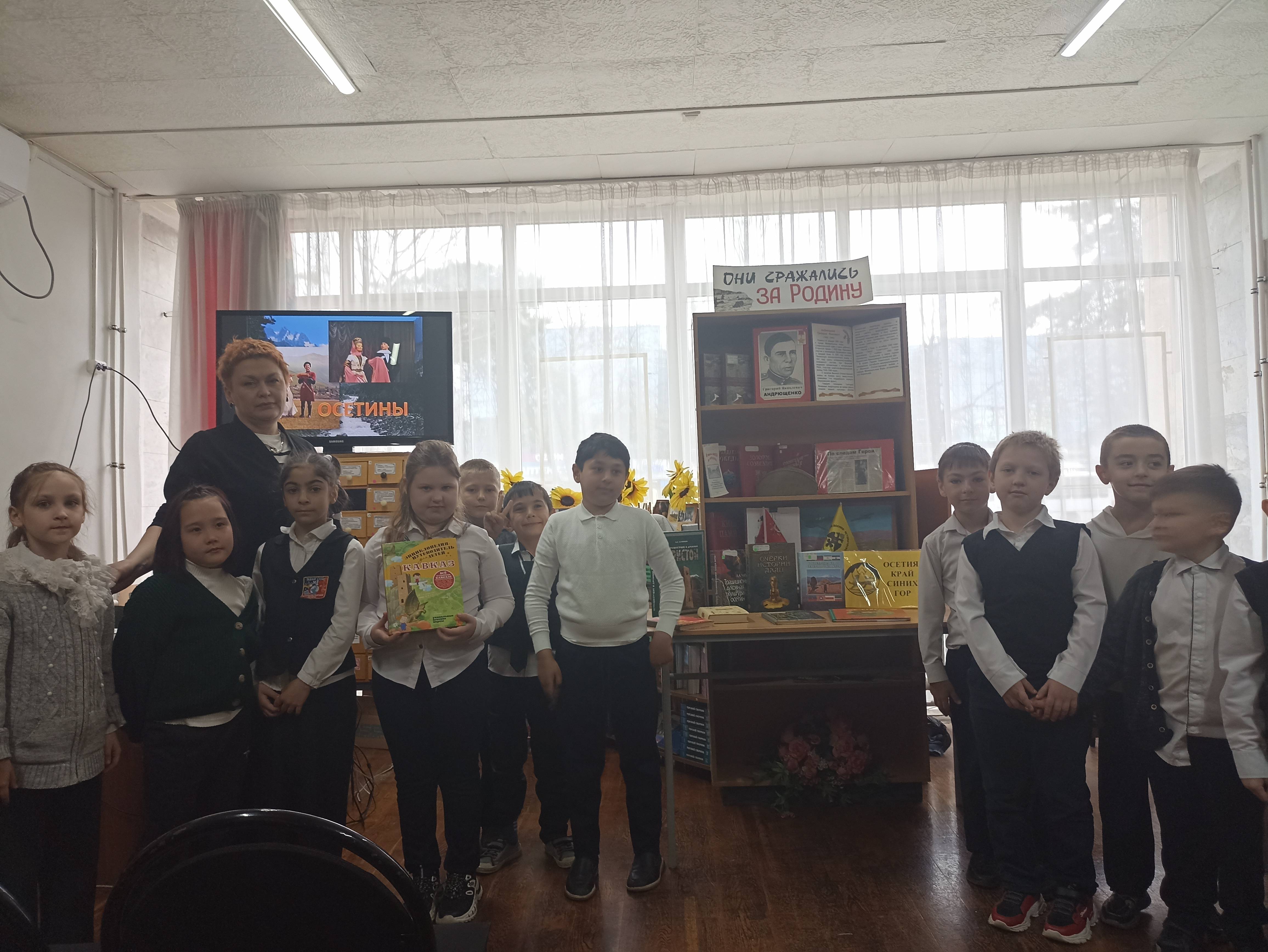 Отдел краеведения Центральной городской библиотеки г. Минеральные Воды продолжает цикл мероприятий «Всё о Северном Кавказе». На этот раз для первоклассников МБОУ СОШ №1 прошло познавательное занятие «Осетия – край синих гор», организованное заведующей отделом Е.А. Гаркушей, членом Местного отделения РО РВИО СК в Минераловодском муниципальном округе (председатель – Акопян М.Б.). В ходе мероприятия школьники узнали, где находится Осетия, от какого древнего народа произошли осетины, почему на гербе республики изображен снежный барс, какой необычный памятник А.С. Пушкину есть в столице республики – городе Владикавказе. Также ребята познакомились с природными достопримечательностями Осетии – рекой Терек и горой Казбек, узнали, какое главное национальное блюдо осетин. Дети с интересом посмотрели отрывки из мультфильмов «Гора самоцветов» и «Волшебная свирель», а также выступление ансамбля «Алан» с «Танцем с кинжалами». Мероприятие прошло в живой атмосфере: школьники активно задавали вопросы и делились впечатлениями.