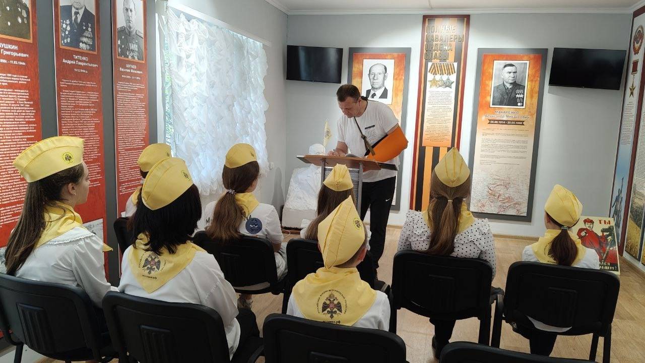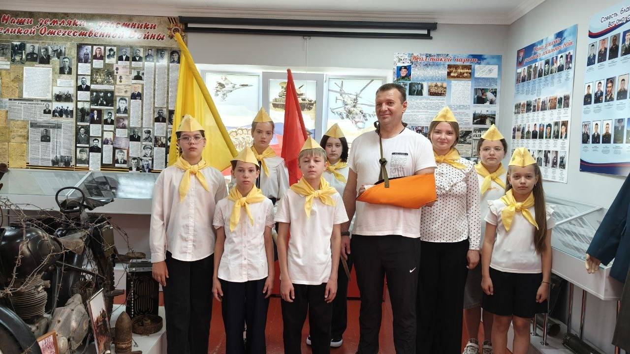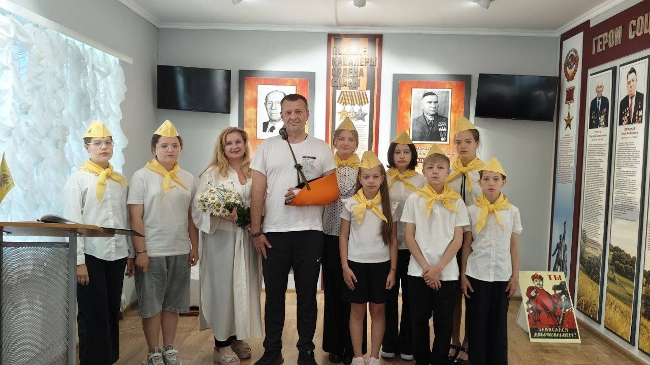 Так, на базе Историко-краеведческого музея «Истоки» №7315 М.Ф. Гусева (руководитель музея – Мирошниченко Т.Н., член РО РВИО СК) МБОУ СОШ №8 имени А.В. Грязнова с. Тищенского Изобильненского муниципального округа (директор – Князева С.С., член РО РВИО СК) члены клуба «Юный патриот» встретились с участником специальной военной операции, выпускником школы С.А. Шевченко, награжденным медалью «За храбрость». Молодежь смогла пообщаться с ветераном боевых действий, задать интересующие их вопросы, узнать как о службе на передовой, так и о воспоминаниях о школьной жизни.