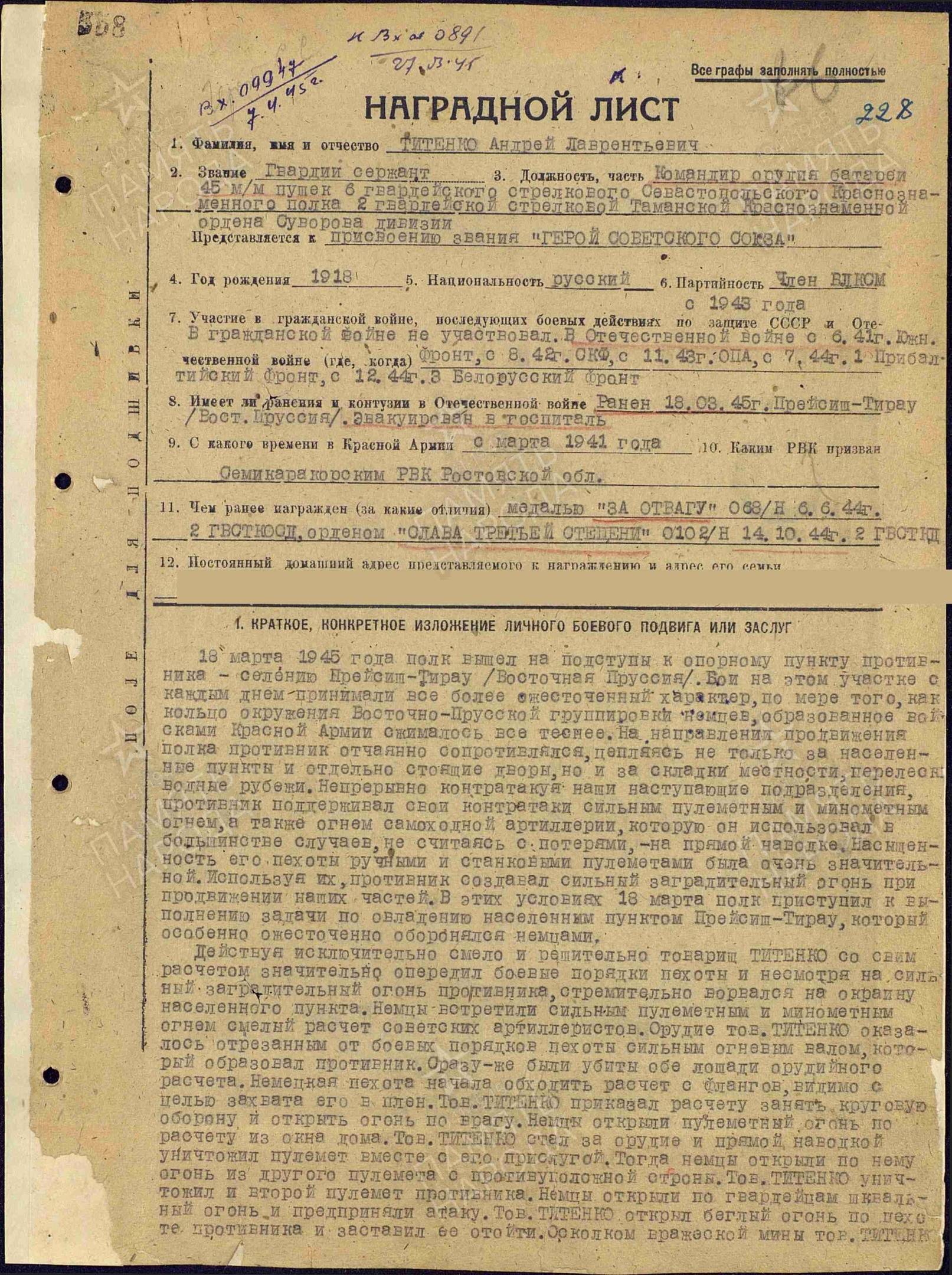 Андрей Лаврентьевич Титенко не дожил до своего рождения один месяц, он ушел из жизни 2 ноября 2022 года.
