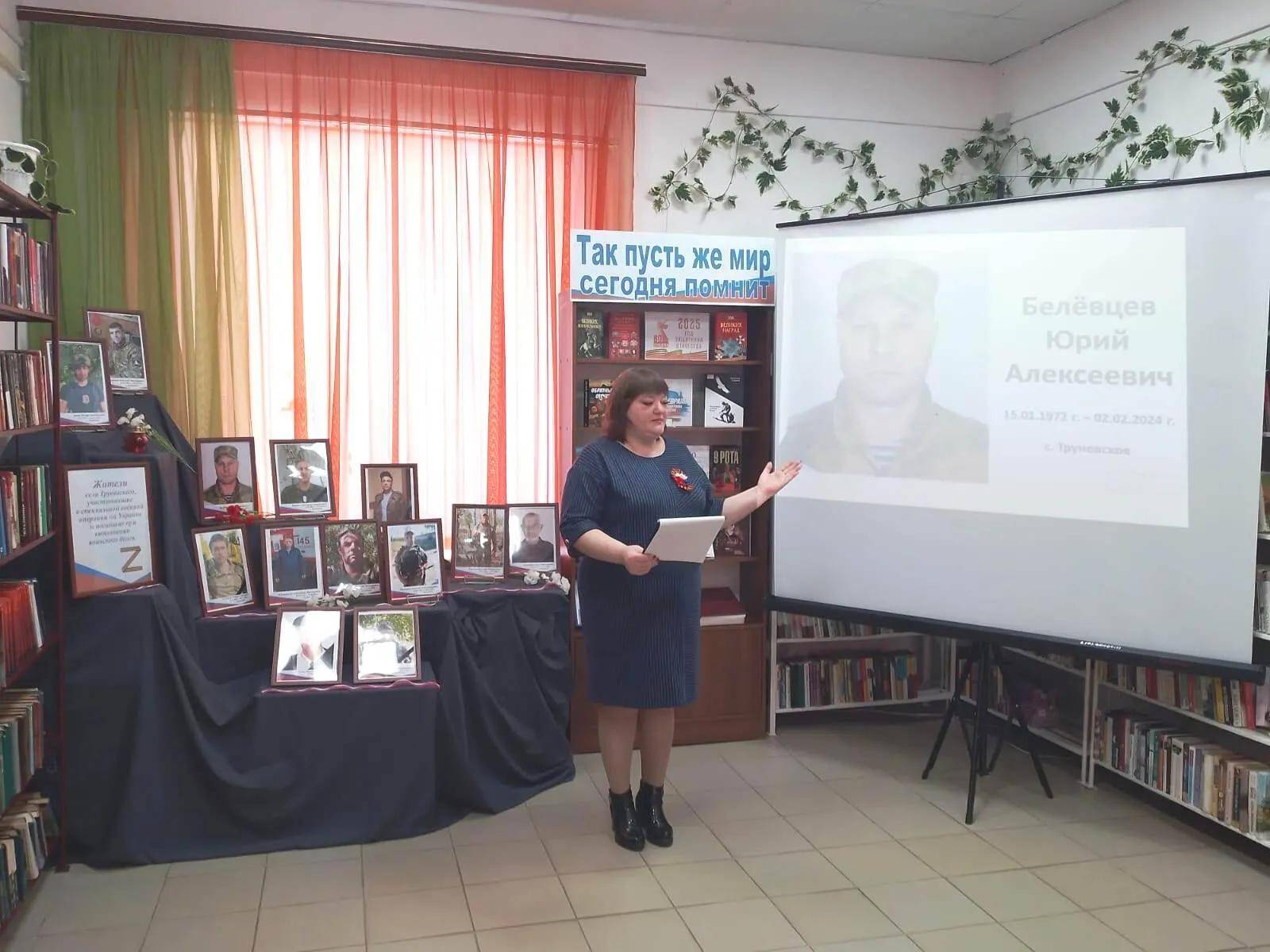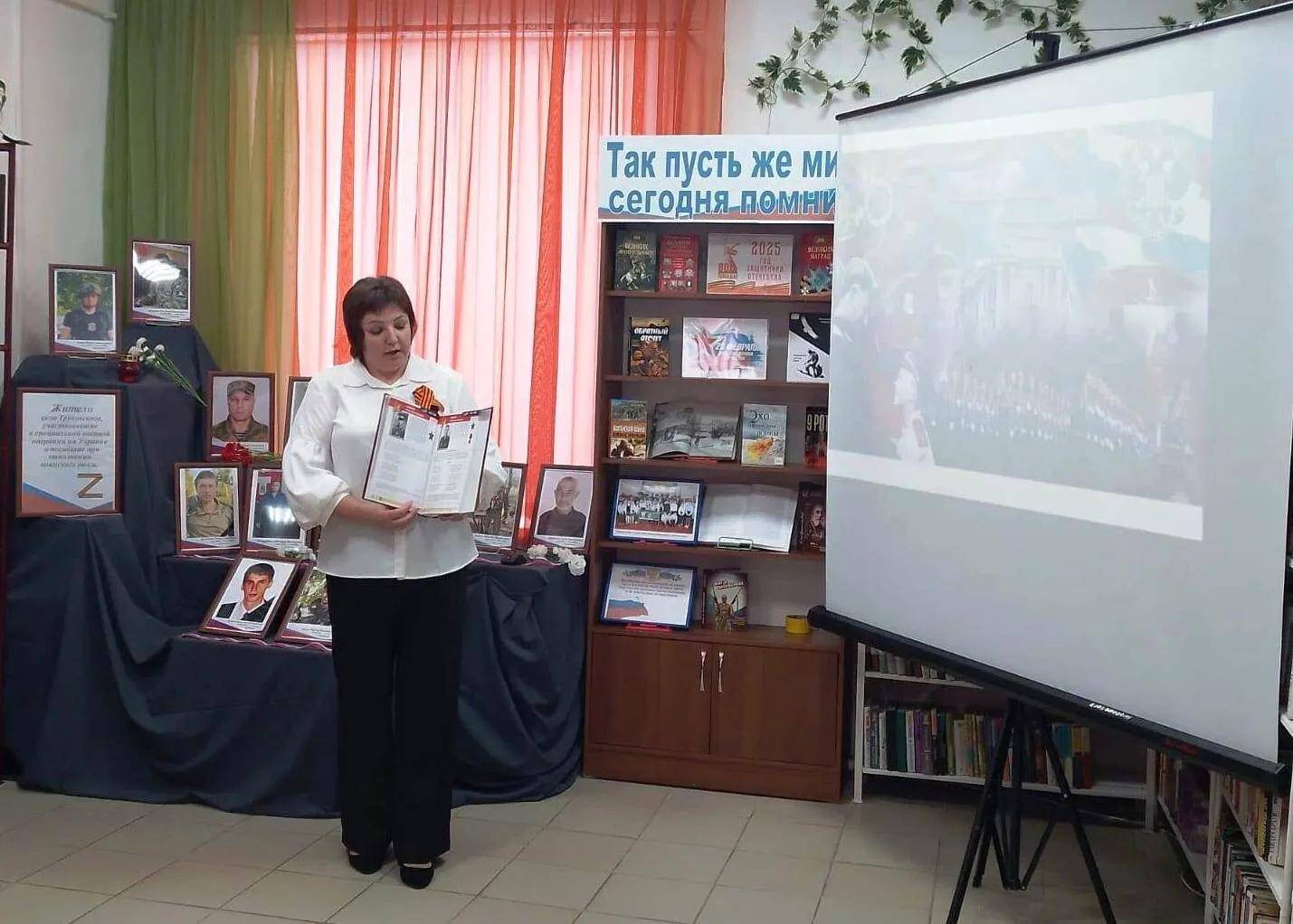 На базе филиала №1 Труновской сельской библиотеки им. А.Д. Бахтинова в преддверии Дня защитника Отечества состоялся урок мужества «Солдаты служат Отчизне родной». Сотрудники библиотеки, члены РО РВИО СК, познакомили молодежь с историей праздника и рассказали о Героях нашего времени – участниках специальной военной операции, которые проявляют беспримерное мужество и преданность, защищая свою Родину. Показ видеоролика о жителях Труновского муниципального округа, погибших при выполнении воинского долга, никого не оставил равнодушным и позволил присутствующим глубже осознать цену мира и жизни. Дополнением к мероприятию стала выставка «Так пусть же мир сегодня помнит!», на которой представлены книги, фотографии и другие материалы, рассказывающие о героизме советских и российских воинов, а также о важности сохранения памяти о подвигах во имя Родины.