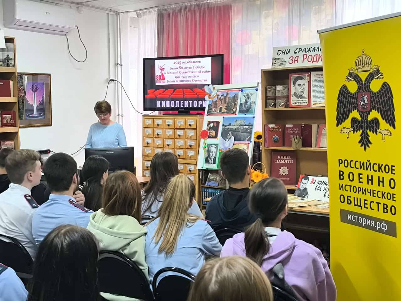 Студенты филиала Ставропольского кооперативного техникума в г. Минеральные Воды под руководством председателя Местного отделения РО РВИО СК в Минераловодском муниципальном округе М.Б. Акопяна приняли участие в кинолектории, посвящённом 80-й годовщине Победы в Великой Отечественной войне и Году защитника Отечества. Мероприятие прошло на базе Центральной городской библиотеки им. Р.Н. Котовской. Участники посмотрели фильм о героической обороне Брестской крепости и посетили выставку «Шаг к успеху», где были представлены творческие работы людей с ограниченными возможностями здоровья.