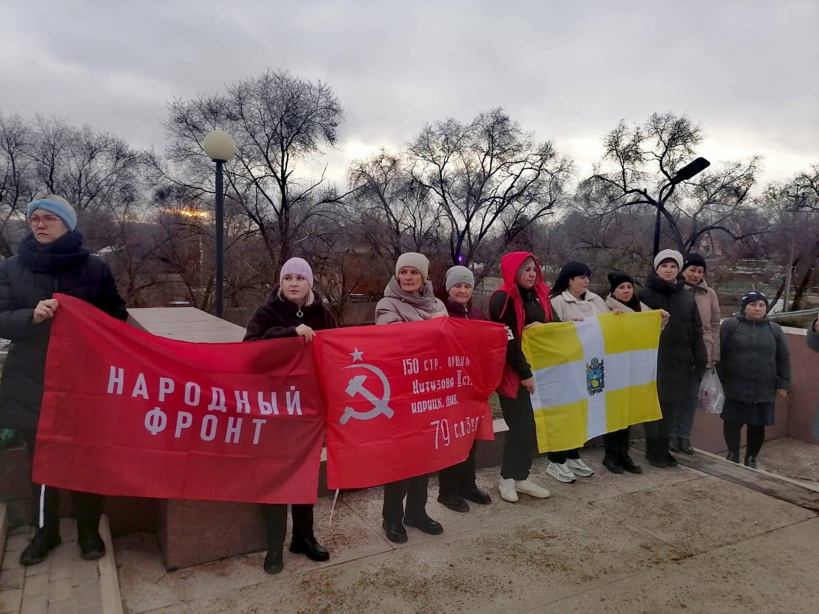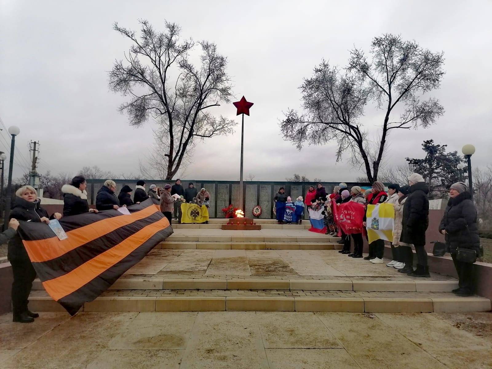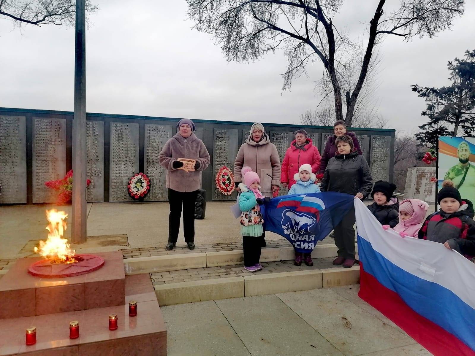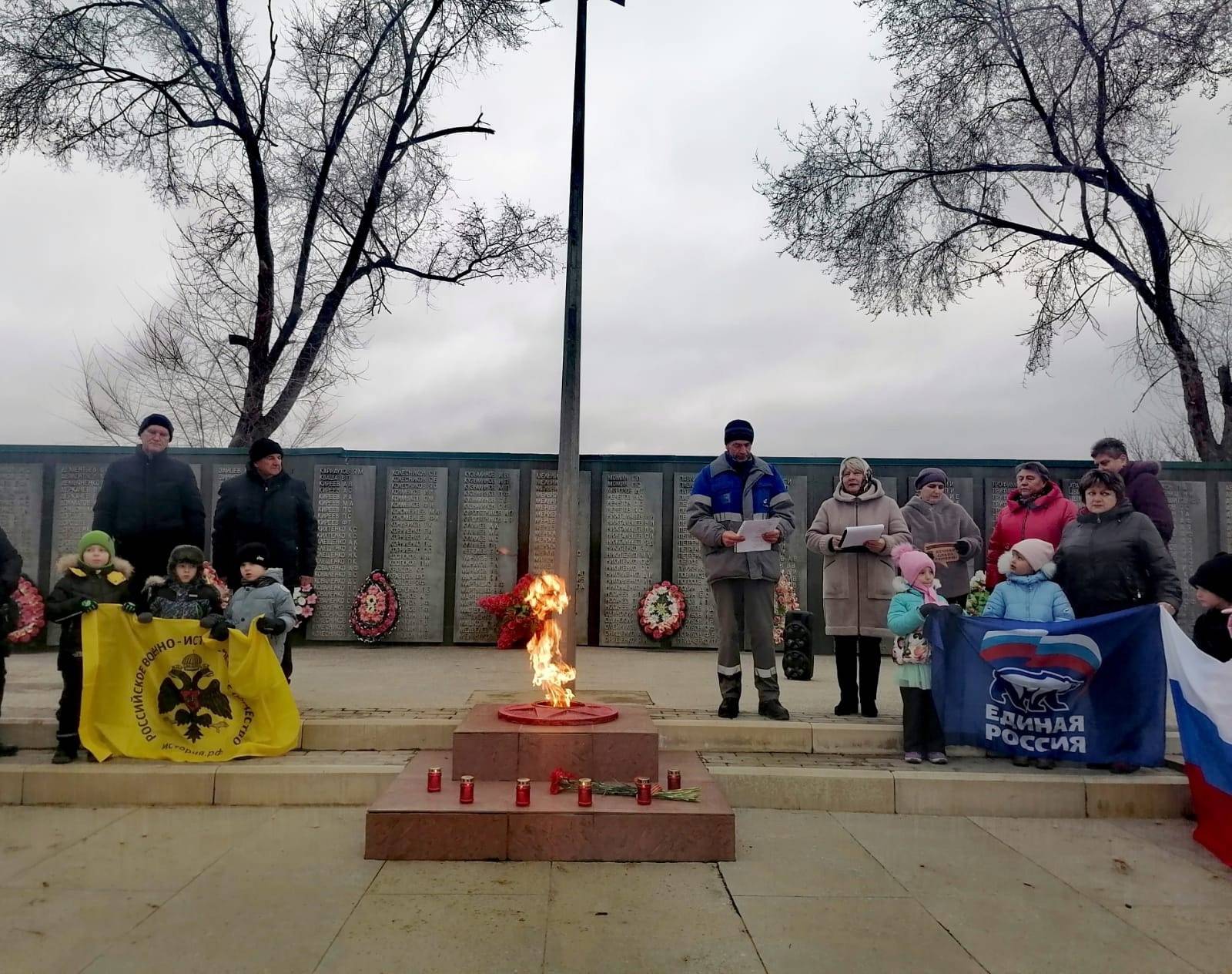 В память о павших защитниках Отечества состоялись минута молчания и возложение цветов к мемориалу.