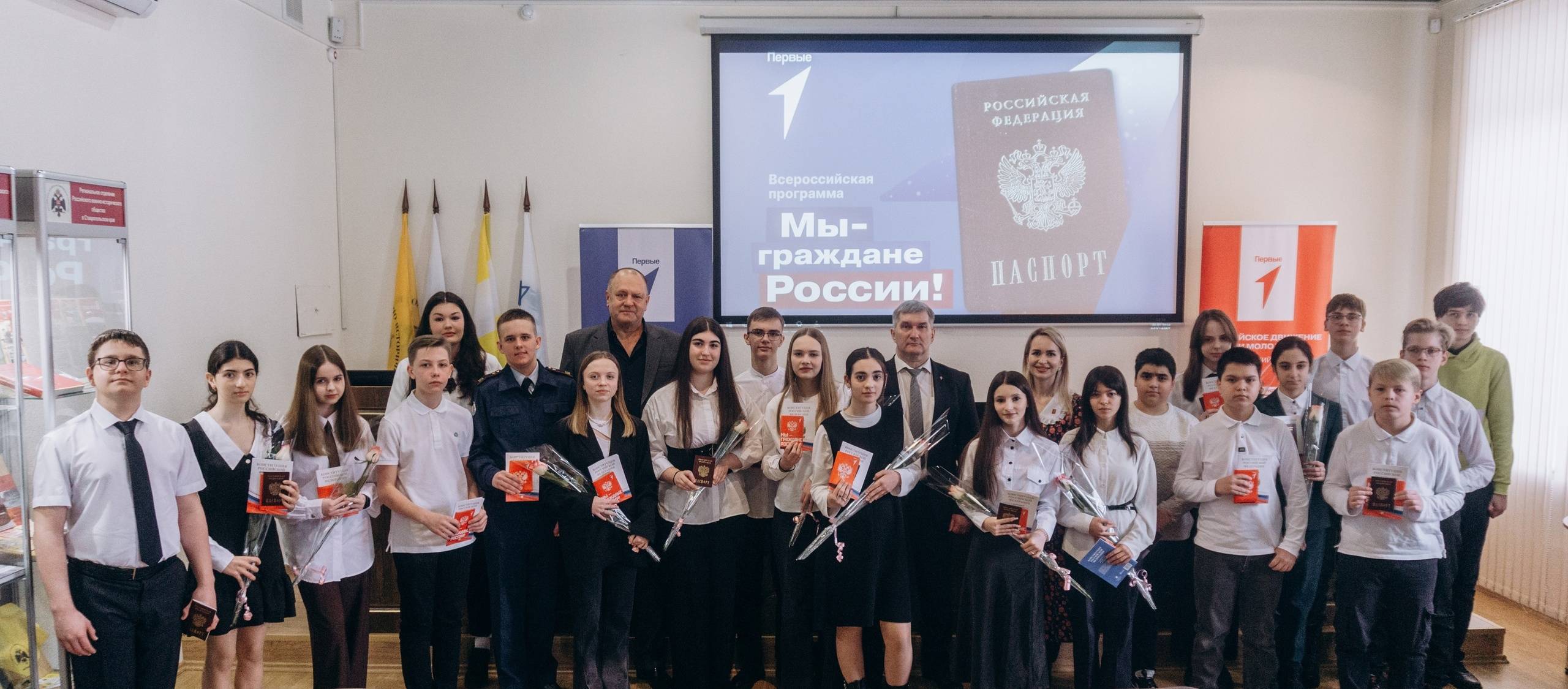 29 января 2024 г. в конференц-зале Регионального отделения Российского военно-исторического общества в Ставропольском крае (РО РВИО СК) первые паспорта в рамках программы «Мы – граждане России» получили юные активисты Российского движения детей и молодёжи «Движение Первых» (РДДМ «Движение Первых») г. Ставрополя.