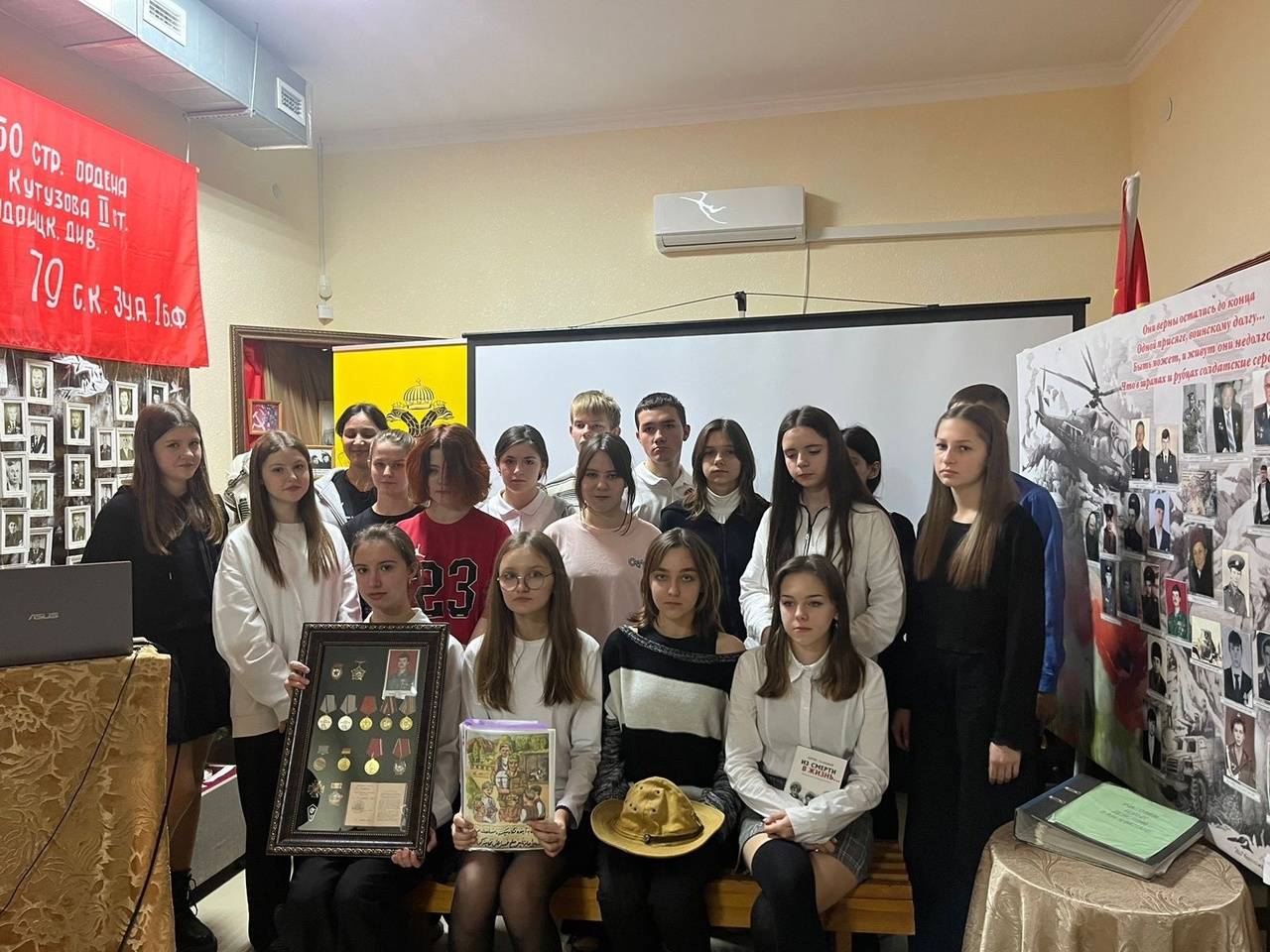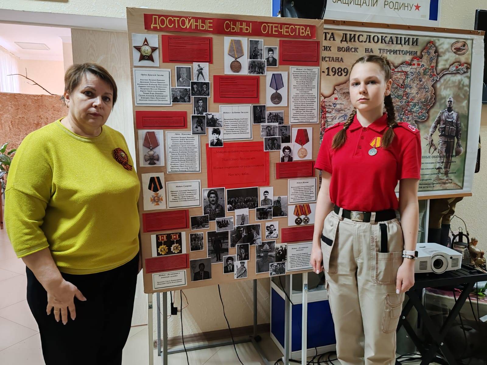 Вниманию ребят был представлен видеоролик, подготовленный учащимися СОШ №11 х. Красночервонного, о земляке Александре Громове, погибшем в 1984 г. в Афганистане, а также музейная фотовыставка «Опалённые солнцем Афганистана» Геннадия Порядина (1944-2017 гг.) и выставка «Достойные сыны Отечества».