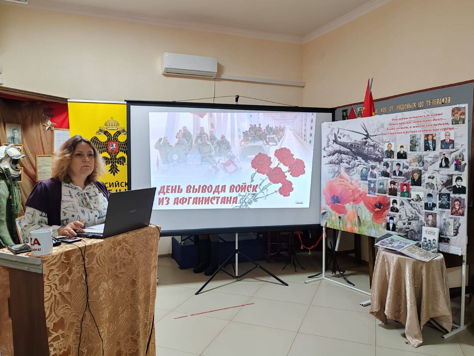 Сотрудники музея, М.Ф. Герасимова и Л.А. Скрипникова, члены РО РВИО СК, познакомили школьников с историей Афганистана, религиозными взглядами его населения, причинами конфликта и задачами, которые стояли перед советскими солдатами в Афганистане. Гости мероприятия узнали о своих земляках-«афганцах», их боевом пути и наградах, полученных ими в ходе участия в Афганской войне.