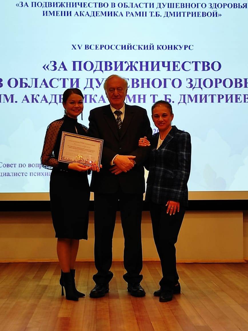 22 декабря 2022 года в Научном центре психического здоровья г. Москва состоялась церемония награждения победителей XV Всероссийского конкурса «За подвижничество в области душевного здоровья имени академика РАМН Т.Б. Дмитриевой».
