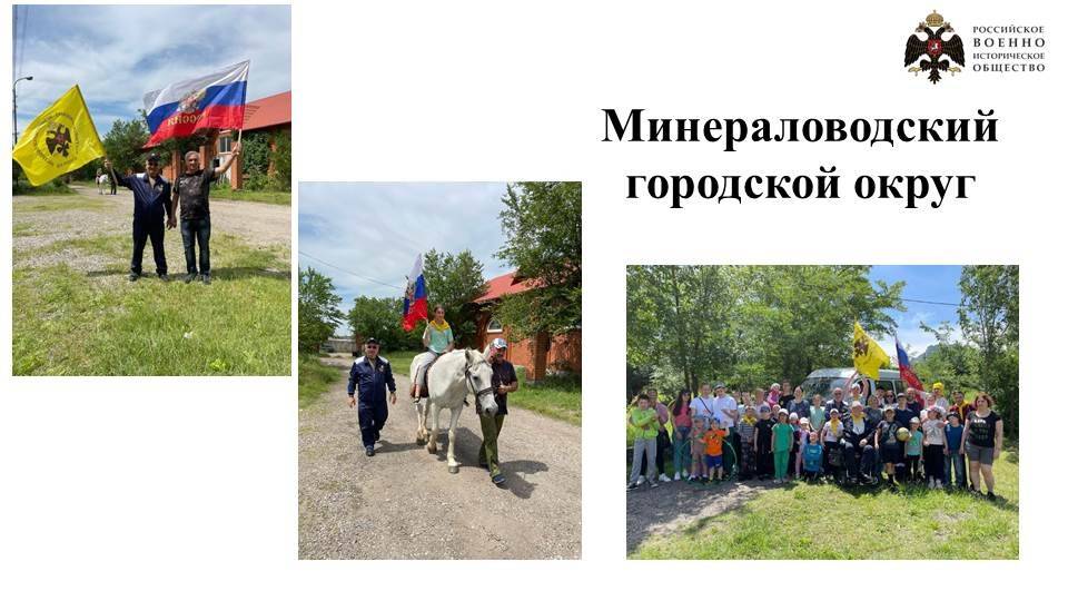 Активисты РО РВИО СК в Минераловодском городском округе под руководством М.Б. Акопяна совместно с Региональной общественной организацией инвалидов «Минеральные Воды» провели мероприятие на территории Конно-спортивной школы х. Красный Пахарь. Дети с заболеванием детским церебральным параличем и ограниченными возможностями здоровья и инвалиды-колясочники совместно с родителями смогли покатались на лошадях, посоревноваться в таких играх, как дартс, баскетбол, футбол, бадминтон и атлетические кольца. Большую помощь в организации оказали воспитанники клуба «Юный патриот». Детям рассказали об истории праздника и его значимости для единения народа России.