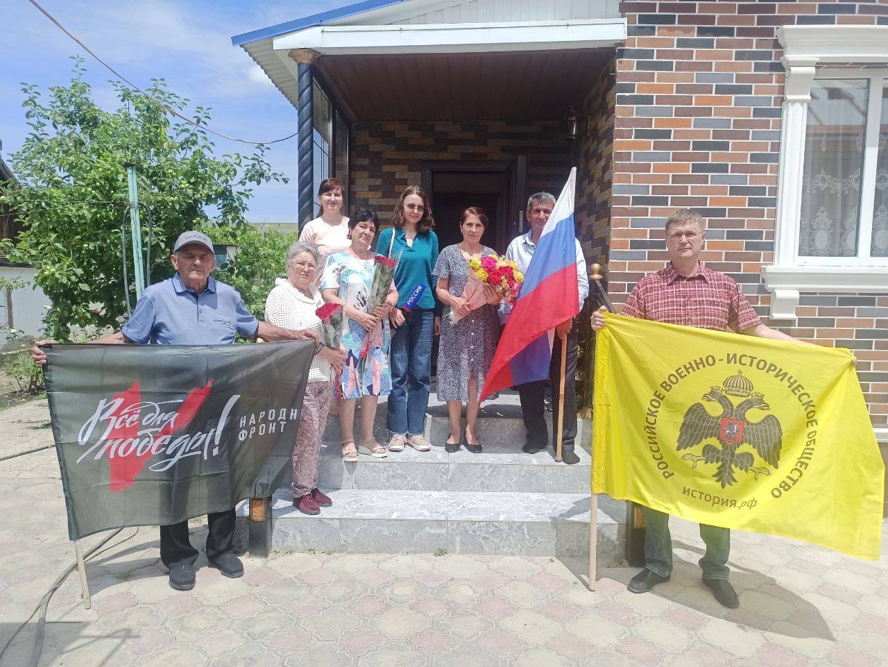 В этот же день исполнительный директор РО РВИО СК, к.и.н., зав. отделом военной истории и патриотической работы Ставропольского государственного музея-заповедника (СГМЗ) – Г.Н. Каменева вместе с активистами РО РВИО СК Н.И. Степаненко и И.А. Кузнецовым, представителями ГТРК-Ставрополье побывали в семье Героя России и Героя Донецкой Народной Республики – Руслана Курбанова и поздравили его родителей с праздником, выразили слова благодарности за воспитание сына, вручили подарочные издания РВИО.