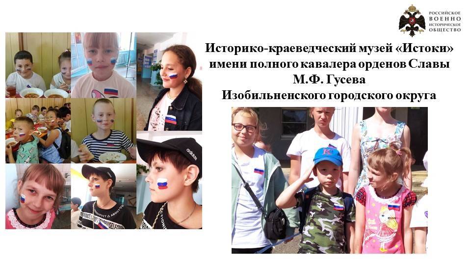 Воспитанники клуба «Юный патриот» РО РВИО СК, юные исследователи Историко-краеведческого музея «Истоки» имени полного кавалера орденов Славы М.Ф. Гусева (руководитель – Мирошниченко Т.Н., член РО РВИО СК) Изобильненского городского округа прочитали тематические стихотворения и приняли участие во флешмобе.