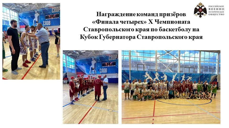 12 июня 2023 года председатель РО РВИО СК, депутат Думы Ставропольского края, кавалер трех орденов Мужества, полковник, Почетный гражданин Ставропольского края – С.А. Шевелёв принял участие в награждении команд призёров «Финала четырех» Х Чемпионата Ставропольского края по баскетболу среди мужских команд производственных коллективов, вузов и городов на Кубок Губернатора Ставропольского края.