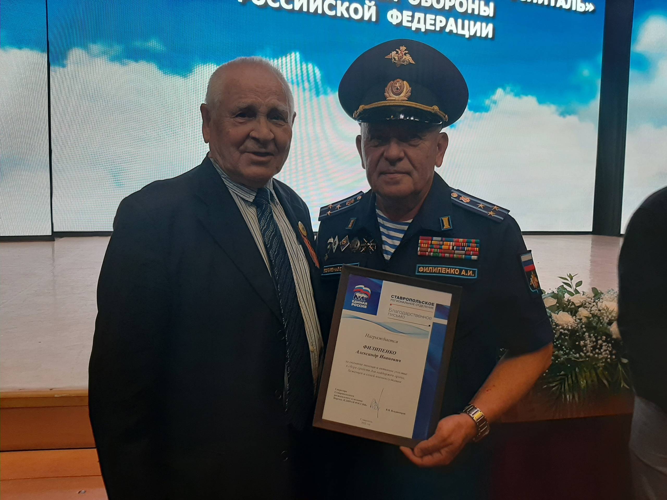 От лица Ставропольского регионального отделения Российского военно-исторического общества (РО РВИО СК) благодарственное письмо начальнику госпиталя О.В. Третьяковой и вверенному ей коллективу за многолетний добросовестный труд вручил Н.Д. Судавцов, д.и.н., Почетный профессор Северо-Кавказского федерального университета, главный научный сотрудник отдела военной истории и патриотической работы Ставропольского государственного музея-заповедника, один из учредителей РО РВИО СК.