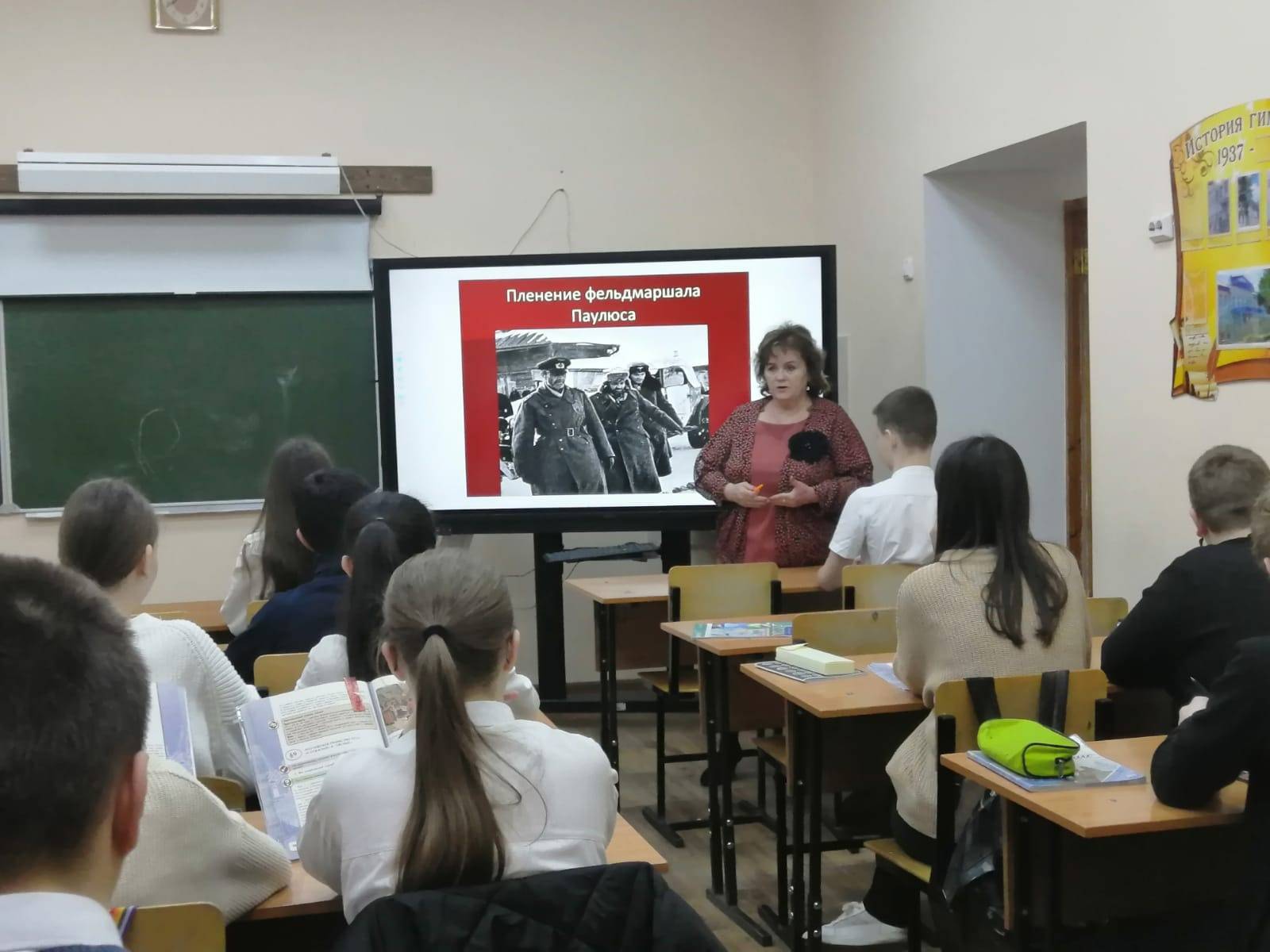 На базе МБОУ гимназии №2 г. Георгиевска представители Местного отделения РО РВИО СК в Георгиевском муниципальном округе, учителя истории и обществознания Алексина Е.Ю. и Забильская Н.А. провели Уроки Мужества для школьников, посвященные подвигу советских солдат в Сталинградской битве. Старшеклассники под их руководством приняли участие во Всероссийской интеллектуальной игре, посвященной этой знаменательной дате.