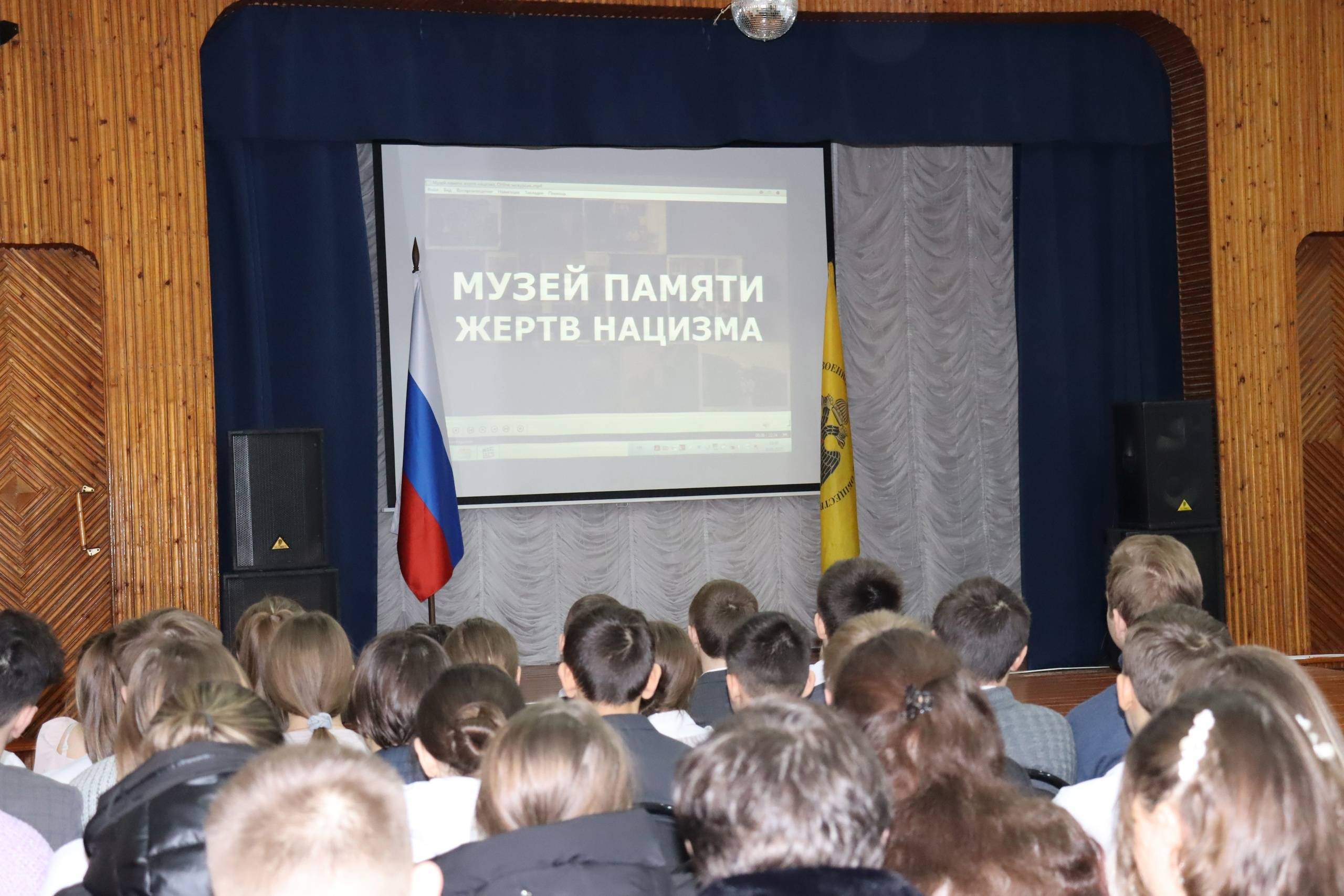 Час памяти «Величайшая трагедия еврейского народа» прошел на базе Музея Труновского муниципального округа (директор – Стрелова А.В., председатель Местного отделения РО РВИО СК в Труновском муниципальном округе). Участниками стали учащиеся 11 класса гимназии №7 с. Донского. Они смогли больше узнать об истории оккупации своего села и края, о преступлениях немецко-фашистских оккупантов, а также об увековечивании памяти Великой Отечественной войны в мемориалах.