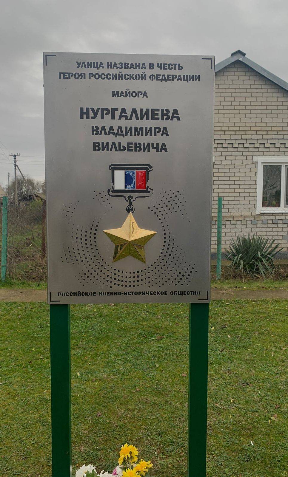 18 ноября 2023 года в х. Дыдымкин Курского муниципального округа состоялась торжественная церемония открытия памятной доски на улице, названной в честь Героя Российской Федерации майора В.В. Нургалиева, в рамках проекта «Улица Героя» Регионального отделения Российского военно-исторического общества в Ставропольском крае (РО РВИО СК). Мемориальная доска установлена на средства Российского военно-исторического общества.
