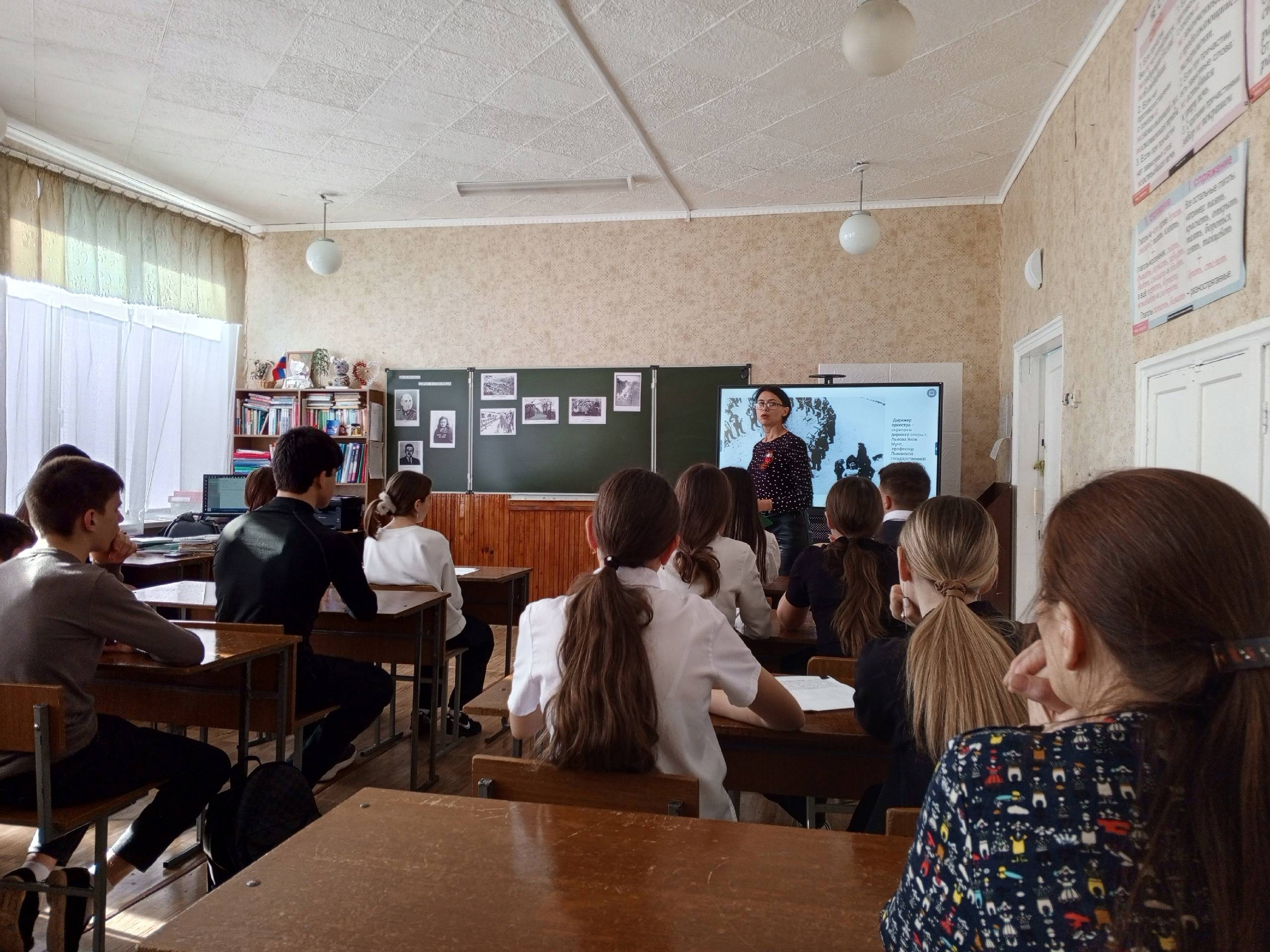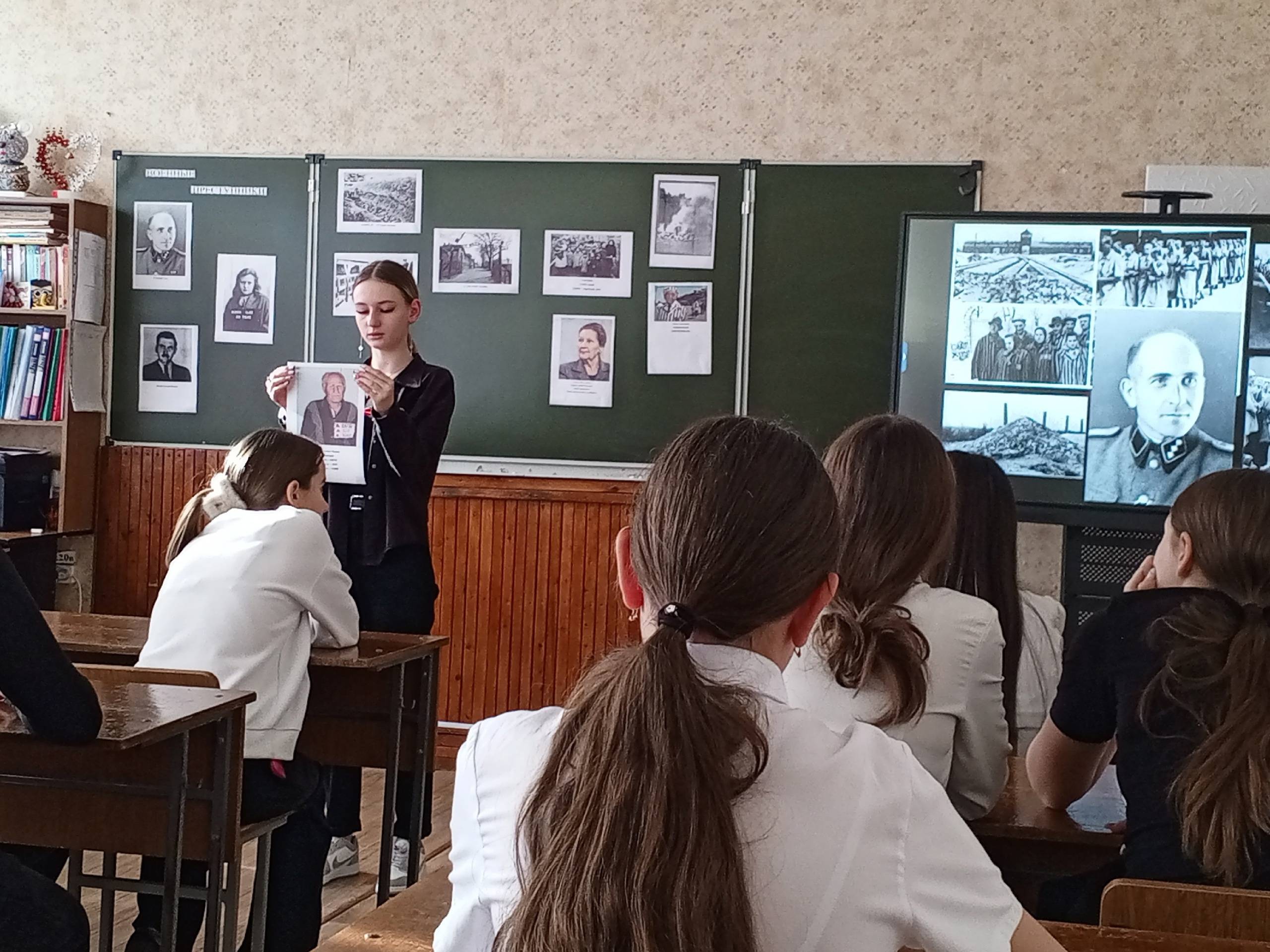 29 января 2025 г. в 9А классе МКОУ СОШ №5 с. Сергиевского Грачёвского муниципального округа (директор – Гоноченко О.А, член Местного отделения РО РВИО СК в Грачёвском муниципальном округе (председатель – Степаненко Н.И.) был проведен классный час «Слёзы и боль Холокоста». Ребята подробнее познакомились с историей Холокоста, увидели весь ужас испытаний, выпавших на долю взрослых и детей в концентрационных лагерях. Учащиеся пришли к выводу, что знание уроков Холокоста необходимо, прежде всего, для того, чтобы подобная трагедия не повторилась когда-либо на Земле.