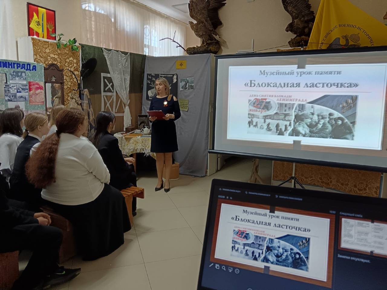 28 января 2025 г. в Новоалександровском районном музее прошли музейные уроки памяти «Блокадная ласточка», посвящённые 81-й годовщине полного снятия фашистской блокады с города Ленинграда. Мероприятия, подготовленные сотрудниками музея-членами Ставропольского регионального отделения Российского военно-исторического общества (РО РВИО СК), посетили учащиеся 8-9 классов МОУ СОШ №14 пос. Краснозоринского и учащиеся 9-го класса МОУ СОШ №6 с. Раздольного Новоалександровского района. Для ребят был подготовлен интересный исторический материал: видеопрезентация, раскрывающая отдельные страницы истории блокады Ленинграда, а также выставки «Блокадная ласточка» и «Дети блокадного Ленинграда». На мероприятии звучали стихи о блокадном Ленинграде, отрывки из 7-й симфонии Дмитрия Шостаковича и стихотворение ленинградской поэтессы Ольги Берггольц в её собственном прочтении. Звуки метронома позволили детям прочувствовать атмосферу блокадного города. В рамках акции «Блокадная ласточка» ребятам раздали символ жизни и надежды блокадного Ленинграда – изображение ласточки с конвертом в клюве. Мероприятия завершились минутой молчания и зажжением свечей в память о непокорённых жителях блокадного города.