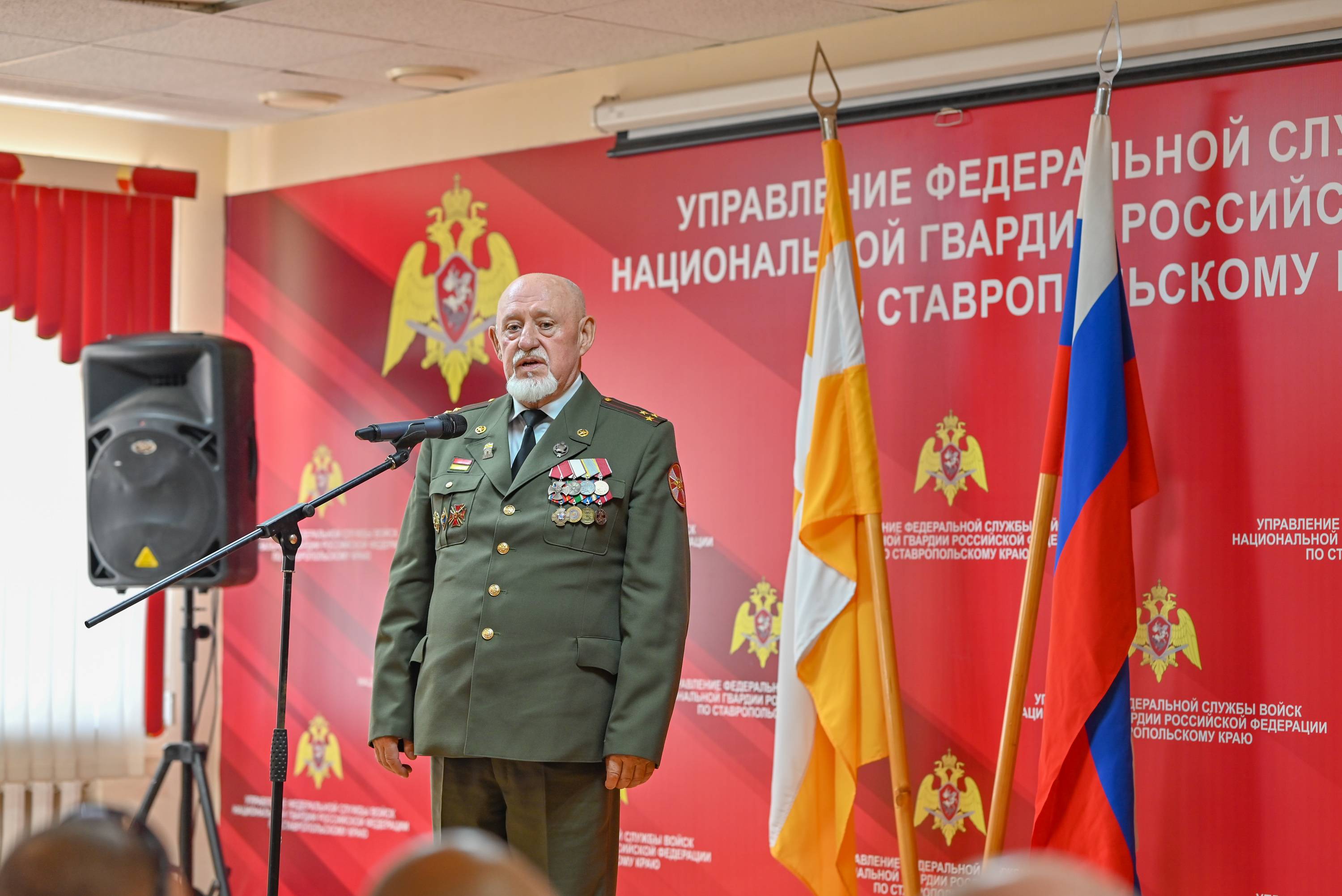 В этот праздничный день в Управлении Росгвардии по Ставропольскому краю состоялось торжественное мероприятие чествования бойцов ставропольского ОМОН. Участие в мероприятии принял активист РО РВИО СК, председатель Совета ветеранов войск правопорядка в Ставропольском крае, ветеран боевых действий на Северном Кавказе, полковник в отставке – В.Т. Медяник.