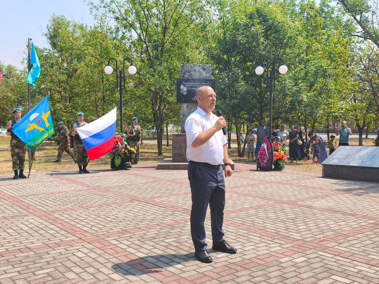 Торжественный митинг ко Дню ВДВ состоялся в г. Георгиевске. От имени Местного отделения РО РВИО СК в Георгиевском муниципальном округе (председатель – Алексина Е.Ю.) слова поздравления выразил Стрельников А.М., председатель Думы Георгиевского муниципального округа. На мероприятии присутствовали представители ветеранских организаций, действующие военнослужащие, жители и гости города, учащаяся молодежь. Представители десантного братства сохраняют и передают новым поколениям многолетние традиции и историю. В рамках митинга участники почтили память павших защитников Отечества.