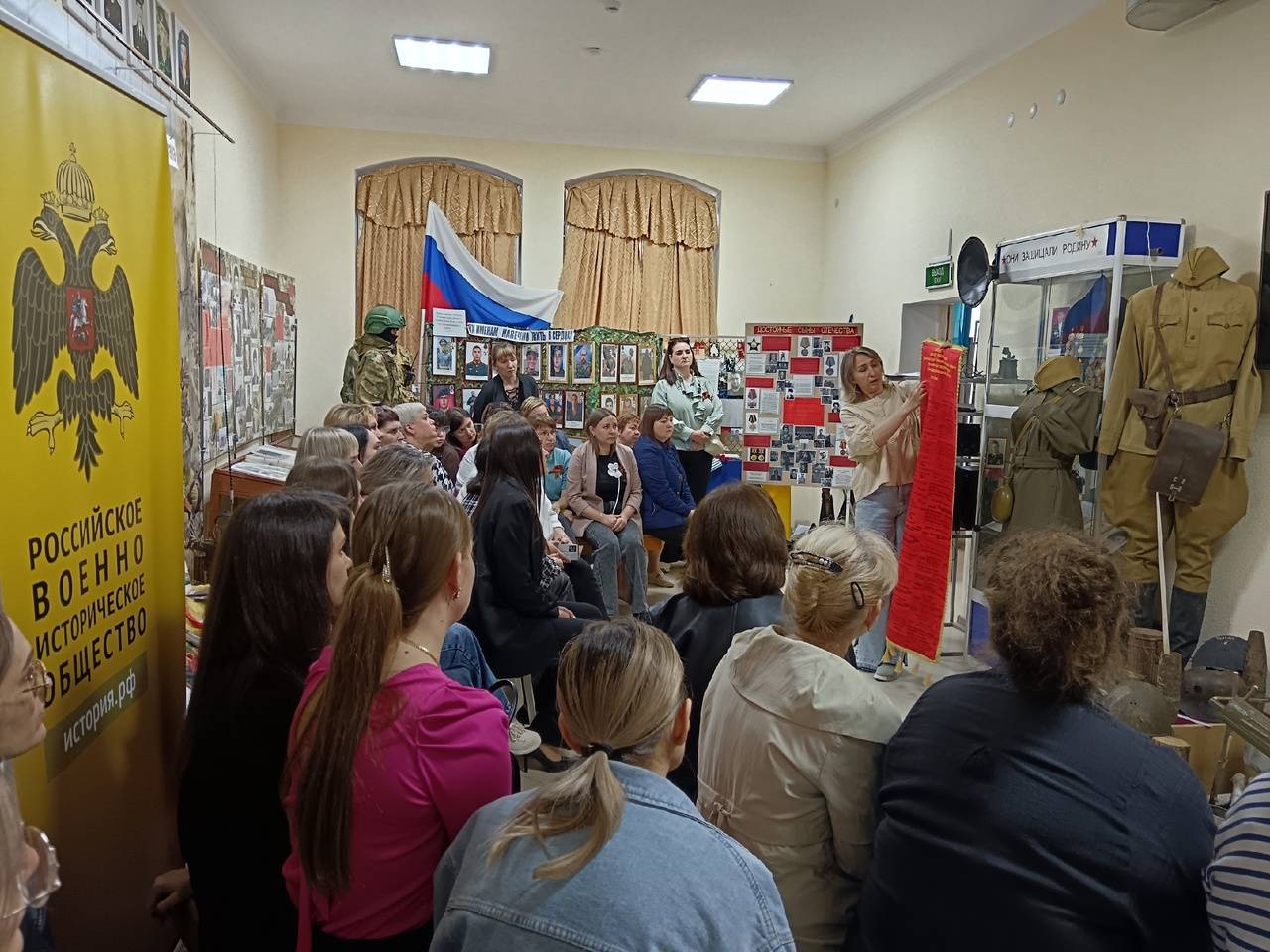 В МКОУ СОШ №9 пос. Рощино Курского муниципального округа состоялось открытие Музея боевой славы. Первыми посетителями уникальной экспозиции стали сами школьники, учителя и почётные гости, в числе которых были члены Местного отделения РО РВИО СК в Курском муниципальном округе во главе с Жулиной Г.В., председателем Отделения. Среди экспонатов – подлинные документы военных лет, исследовательские работы учащихся, а также элементы обмундирования времён Великой Отечественной войны. Музей станет центром просветительской работы: здесь будут проходить уроки мужества, встречи с участниками СВО, тематические выставки и интерактивные занятия для учащихся.