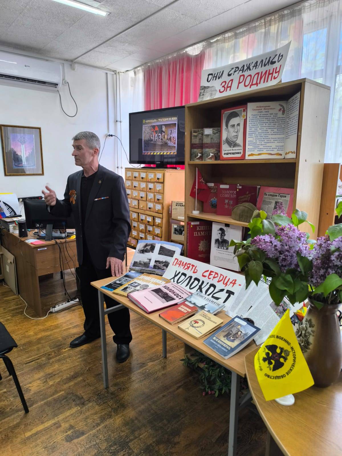 На базе Центральной городской библиотеки им. Р.Н. Котовской для студентов филиала Ставропольского кооперативного техникума в г. Минеральные Воды по инициативе М.Б. Акопяна, председателя Местного отделения РО РВИО СК в Минераловодском муниципальном округе, состоялся ряд мероприятий, посвящённых памятным историческим датам: 155-летию со дня рождения В.И. Ленина (22 апреля 1870 г.), 110-й годовщине начала геноцида армянского народа в Османской империи (24 апреля 1915 г.), 39-летию со дня аварии на Чернобыльской АЭС (26 апреля 1986 г.). Студенты первого курса подготовили проекты, посвящённые этим событиям. Почётными гостями мероприятий стали: Мисюрин Н.М., ветеран Коммунистический партии, Гебель Ю.В., председатель Совета ветеранов транспортной прокуратуры, Пискунов С.Б., ликвидатор аварии на Чернобыльской АЭС.