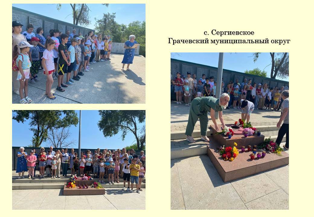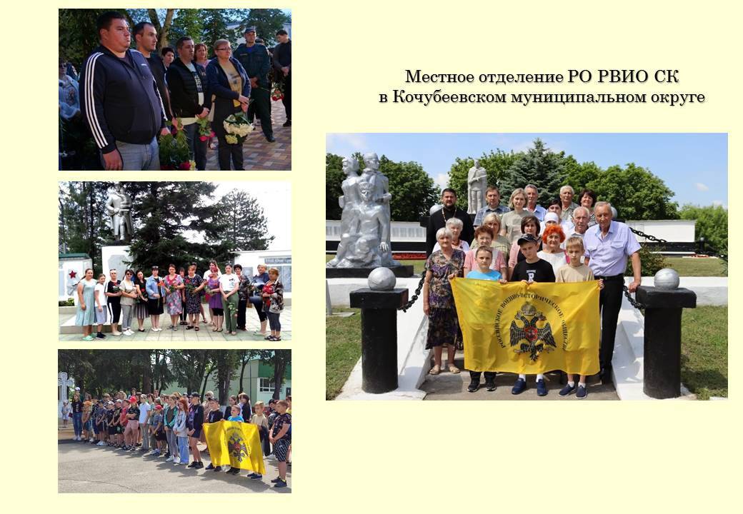 Так, 22 июня 2023 года активисты РО РВИО СК из с. Сергиевского приняли активное участие в организации и проведении памятного митинга у сельского мемориала, посвященного Великой Отечественной войне. Организатором мероприятия стал Сергиевский Дом культуры (директор – Петрова З.И., член РО РВИО СК) В память о погибших защитниках Отечества жители и гости села возложили цветы к памятнику и зажгли свечи в рамках Всероссийской акции «Свеча памяти».
