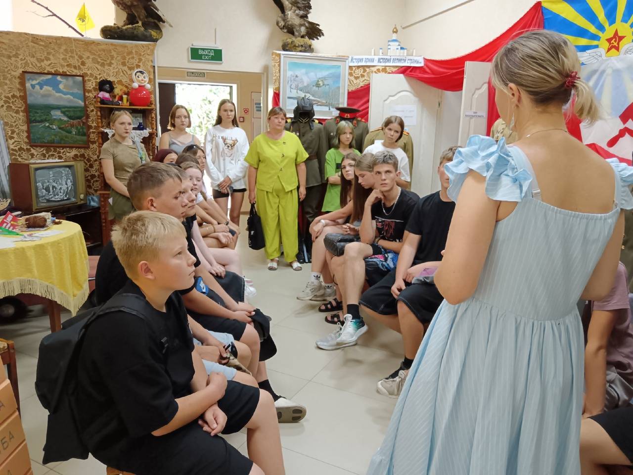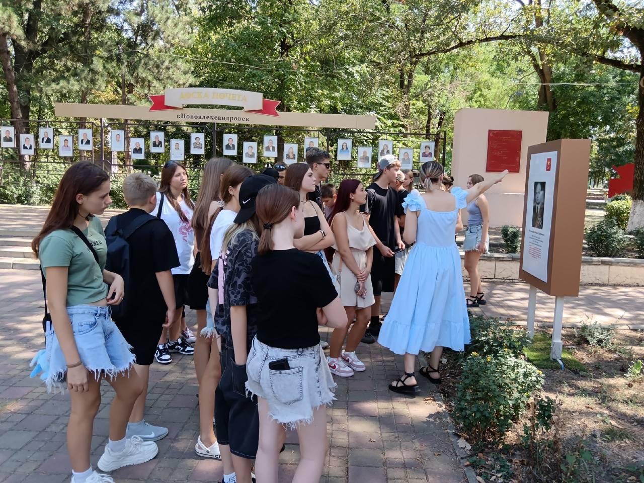 После официального открытия фотовыставки сотрудники музея Герасимова М.Ф. и Скрипникова Л.А., члены РО РВИО СК, провели просветительскую экскурсию по залам музея и ознакомительную пешую экскурсию по улице Ленина и Аллее Славы для воспитанников оздоровительного центра «Дружба» из города Антрацита (Луганская Народная Республика), который является побратимом г. Новоалександровска. Ребята остались под большим впечатлением от мероприятия, узнали об известных людях и событиях, связанных с районом, а также заинтересовались многими экспонатами в залах музея.