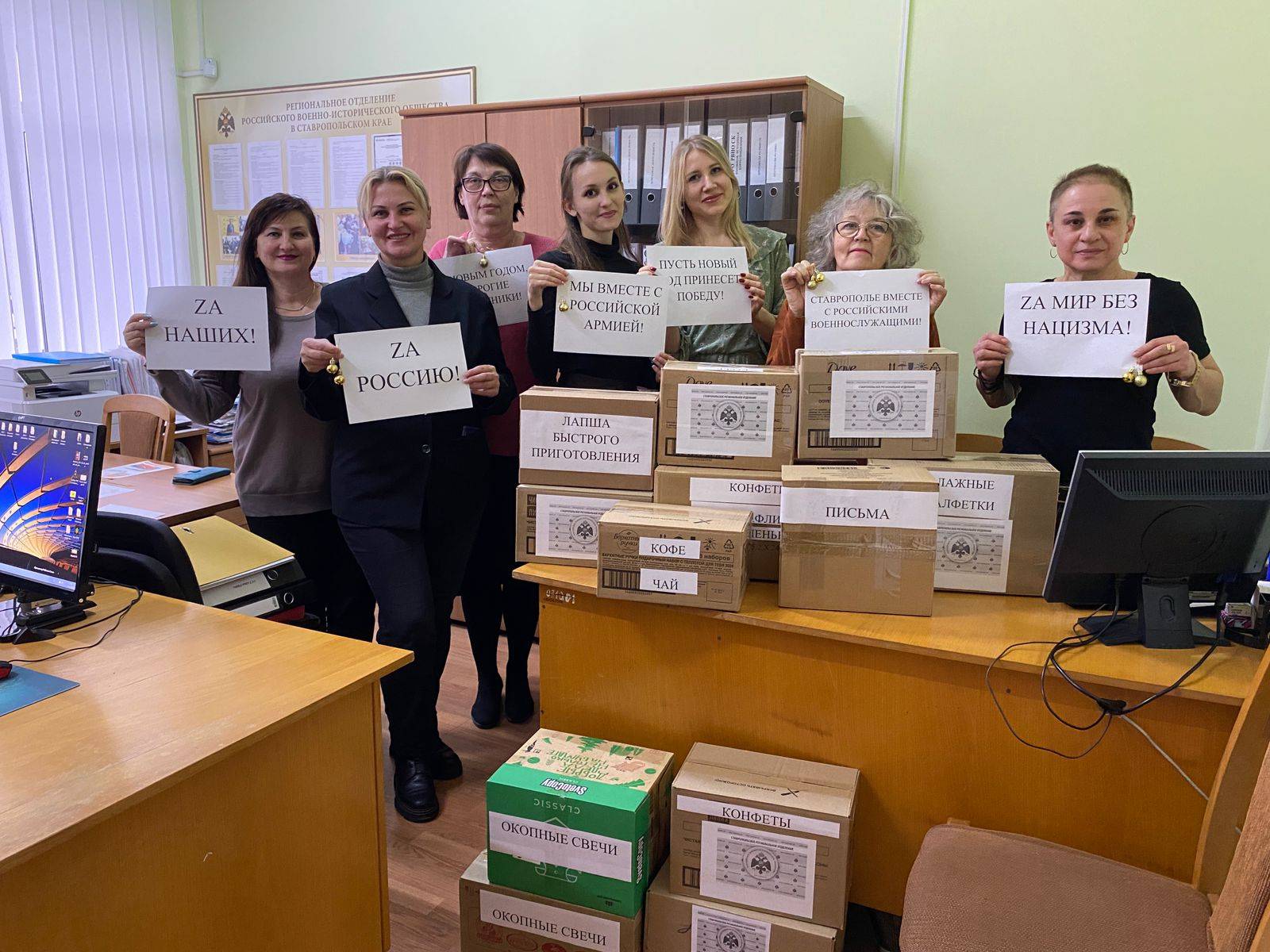 Традиционно в преддверии праздников представители Ставропольского регионального отделения Российского военно-исторического общества (РО РВИО СК) (председатель – Шевелёв С.А.) стараются порадовать наших бойцов, находящихся на передовой, и передать им привет с малой Родины. Наступающий Новый год не стал исключением, поэтому 18 декабря 2024 г. при содействии сотрудников отдела военной истории и патриотической работы Ставропольского государственного музея-заповедника (СГМЗ) (зав. отделом – Каменева Г.Н.) состоялась очередная отправка гуманитарного груза в зону спецоперации.